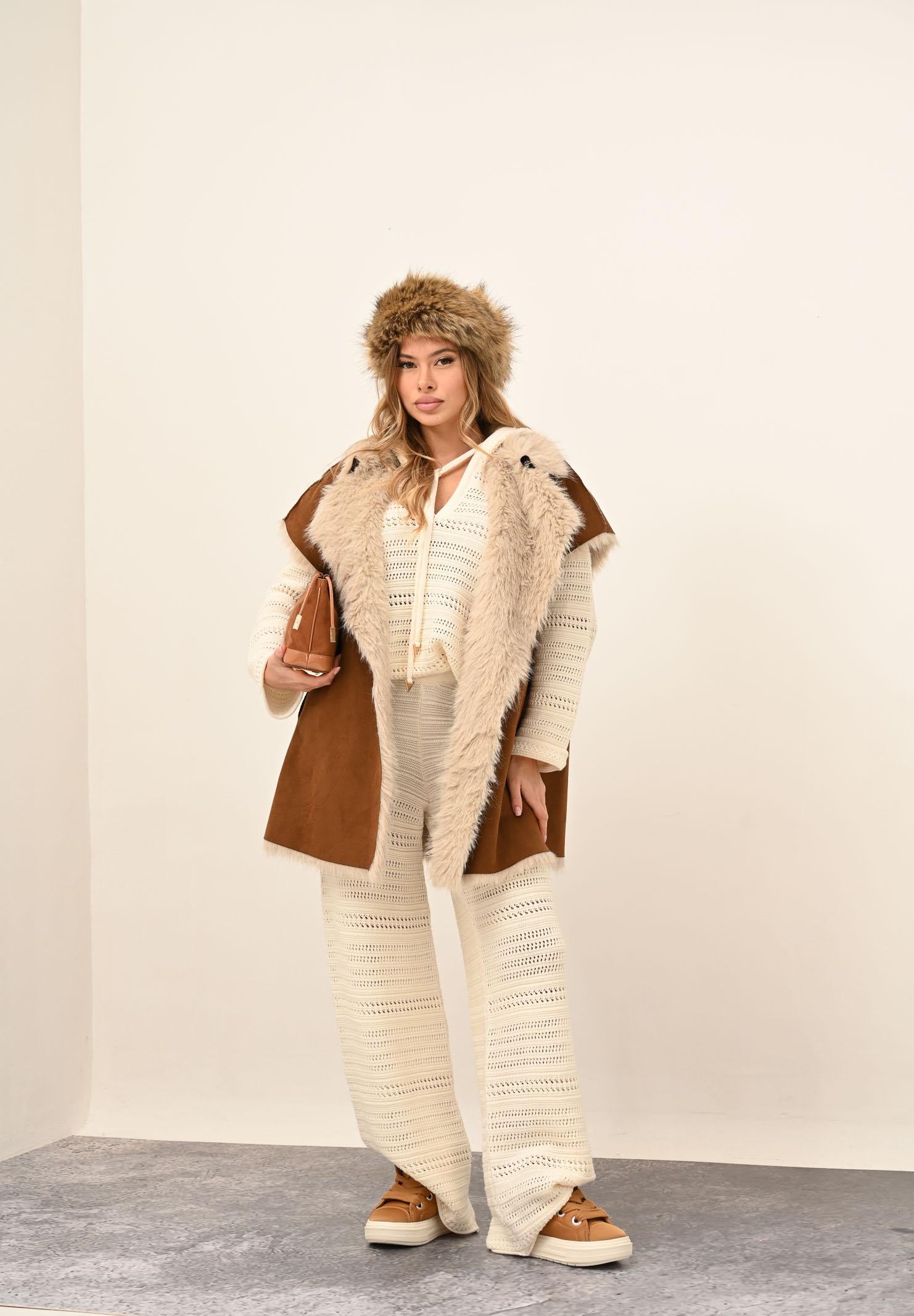 Pantalone in maglia panna donna regular fit autunno inverno PTKD11005V2
