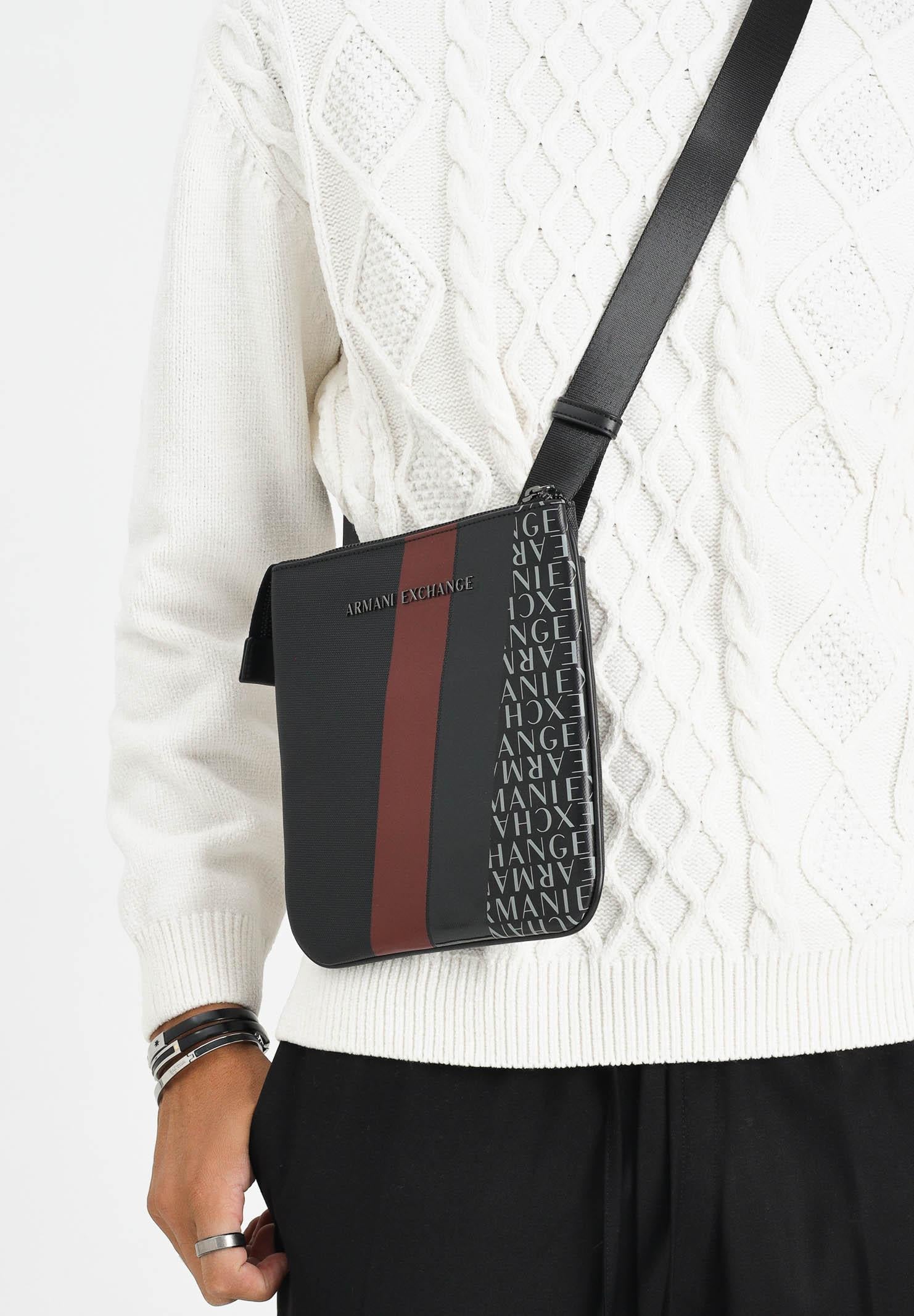 ARMANI EXCHANGE Borsello nero da uomo con motivo color block e logo