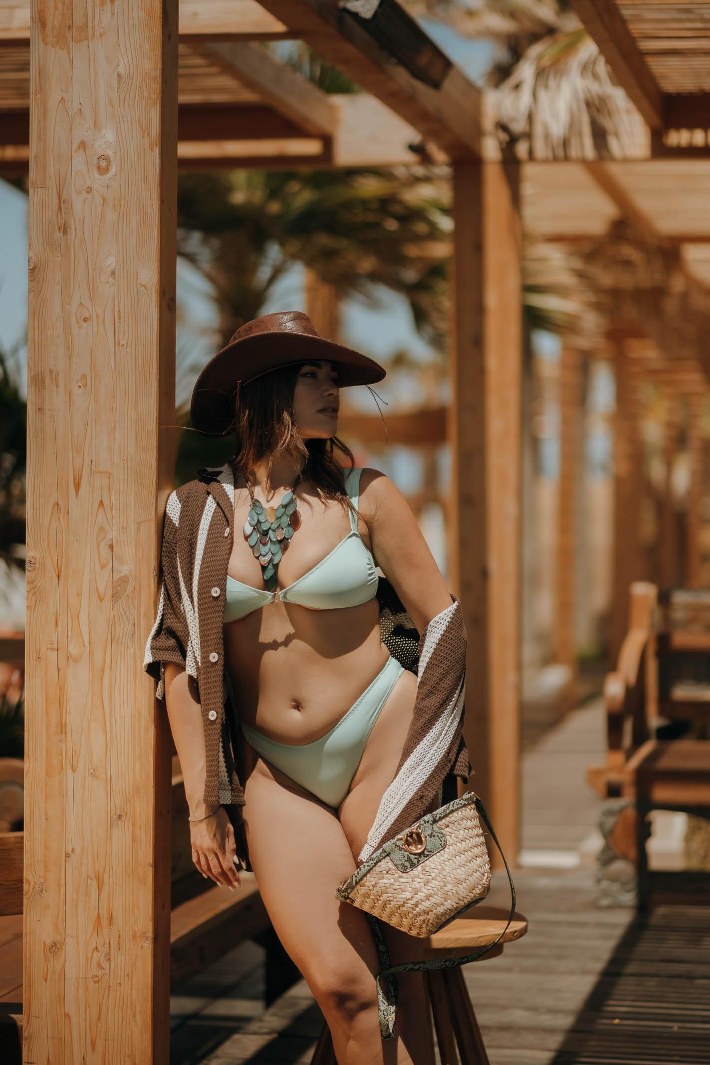SANTAS Bikini San Michele verde menta da donna. Il bikini è composto da un top con spalline fisse e una chiusura sul retro con gancio, che garantisce una vestibilità sicura e comoda. Il top presenta un elegante dettaglio al centro del seno, che aggiunge un tocco di raffinatezza al design minimalista. La parte inferiore è a vita alta, senza laccetti, per un comfort ottimale e una vestibilità che si adatta perfettamente alla silhouette. Il colore brillante e la semplicità del design rendono questo bikini ideale per chi cerca uno stile moderno e sofisticato. La modella indossa una taglia S ed è alta 170cm. Si consiglia un lavaggio a mano. Stagione primavera estate.