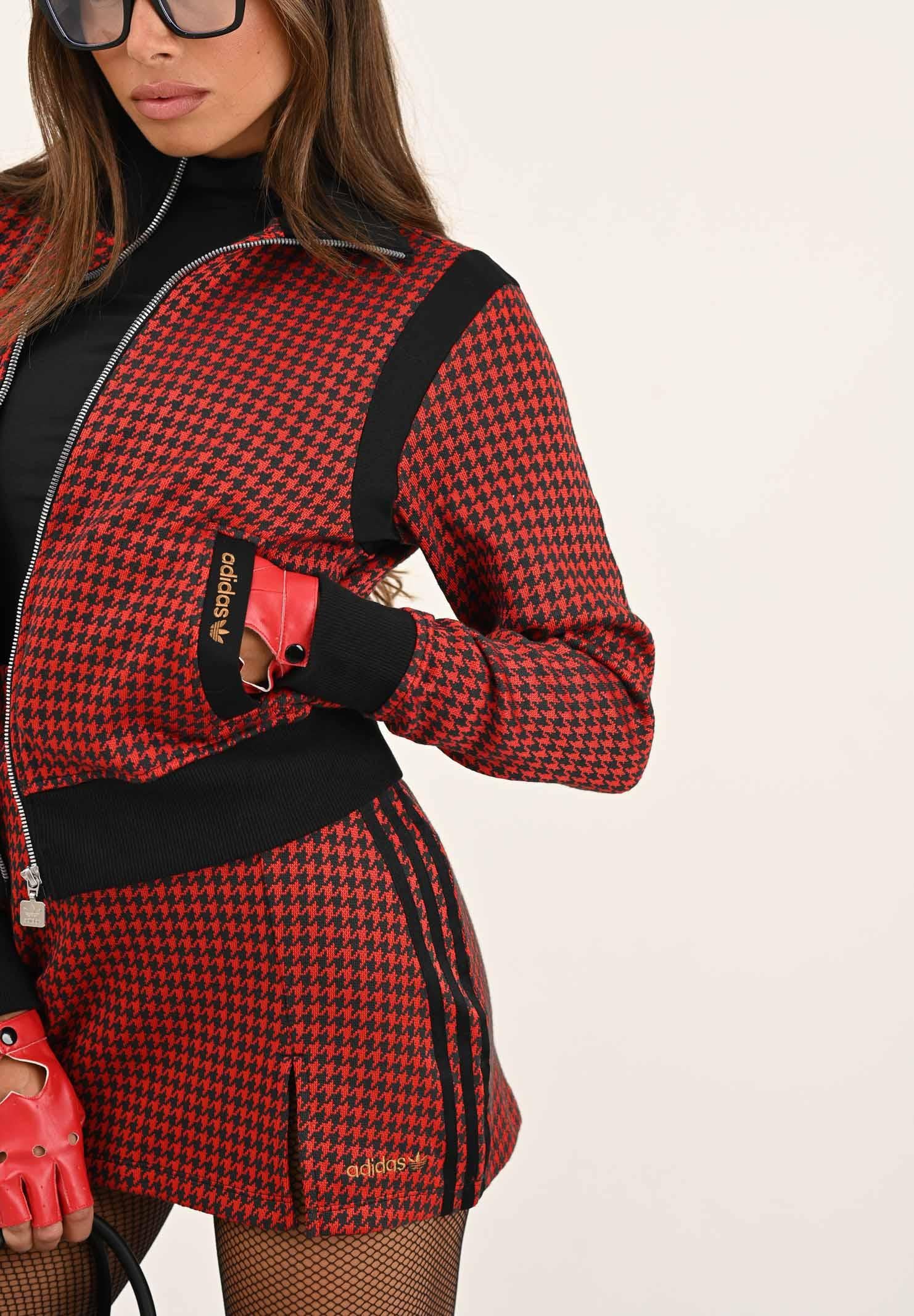 ADIDAS ORIGINALS Felpa con zip pied-de-poule rossa e nera da donna
