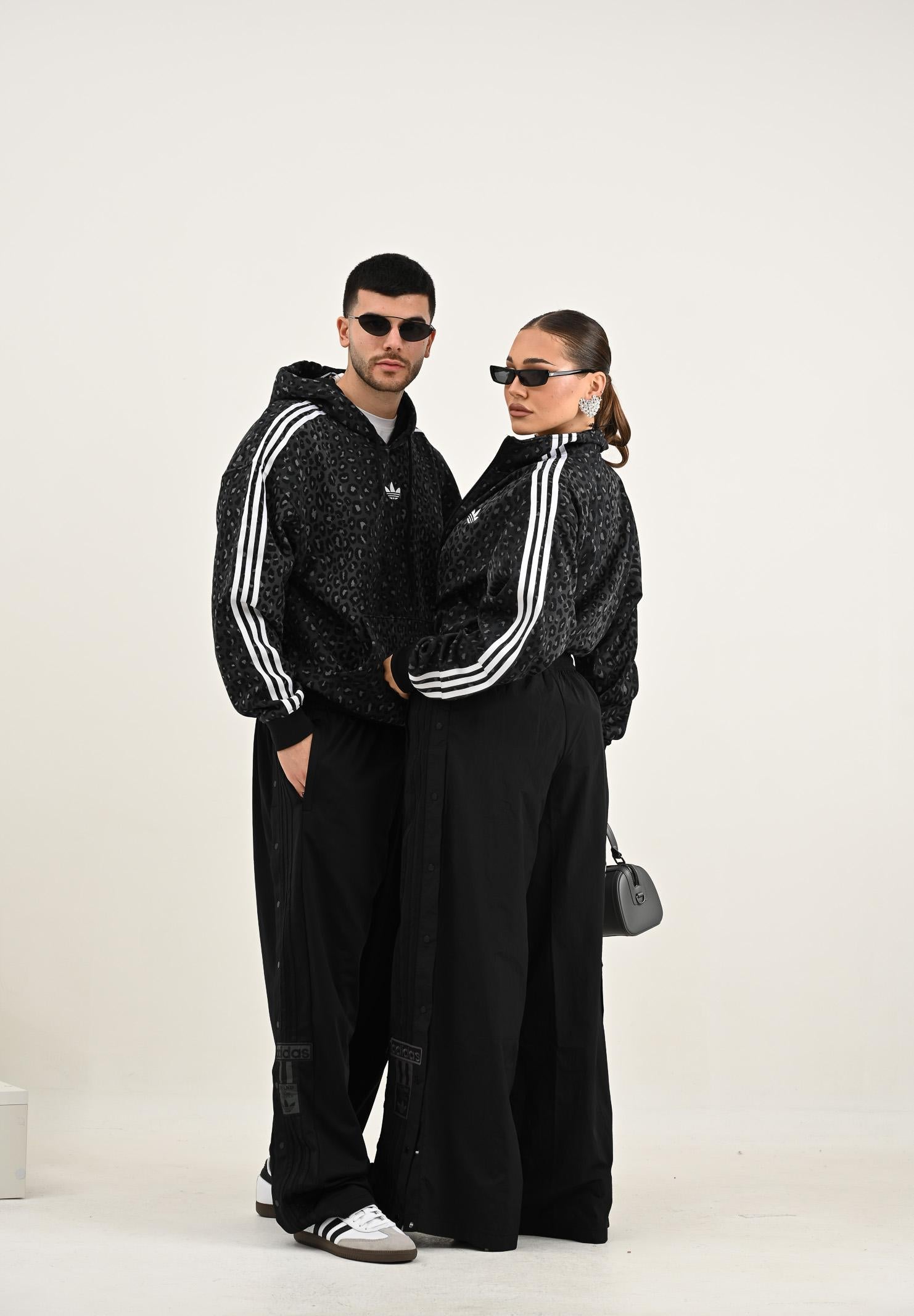 ADIDAS ORIGINALS Felpa con cappuccio Leo All Over Print Loose nera da donna