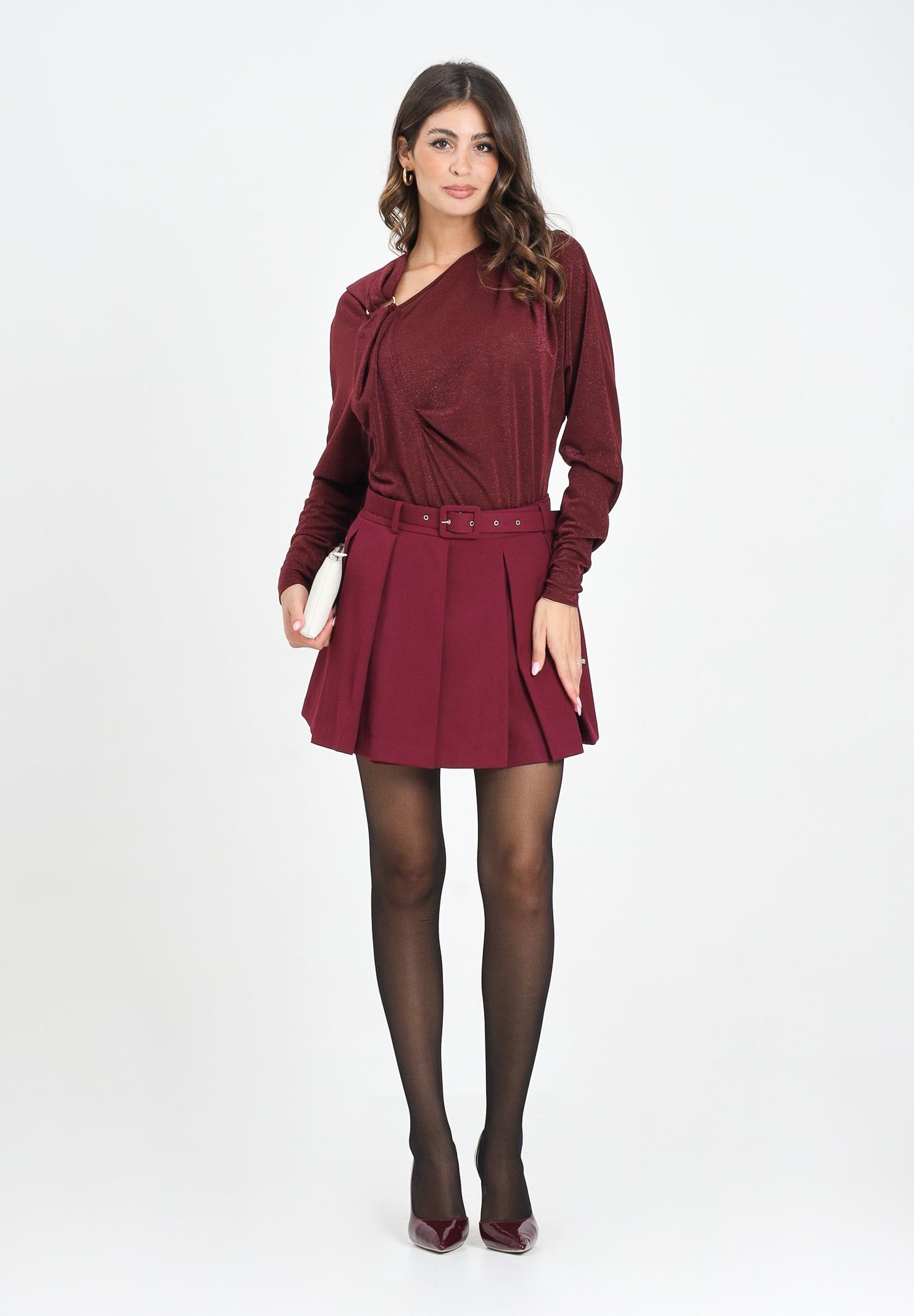 SIMONA CORSELLINI Gonna corta bordeaux da donna con ampie pieghe piatte