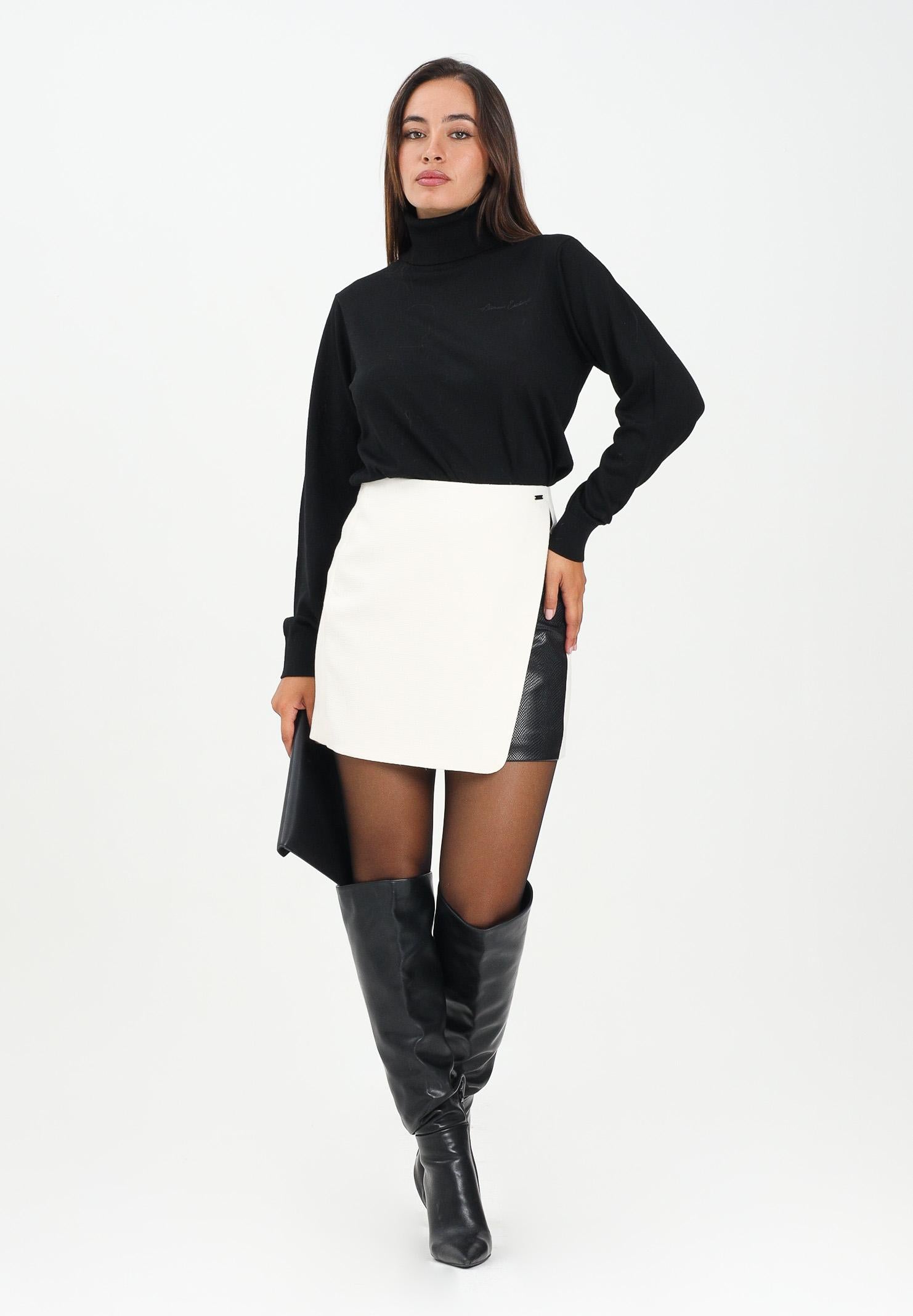 ARMANI EXCHANGE Gonna corta panna da donna con inserto in ecopelle nera