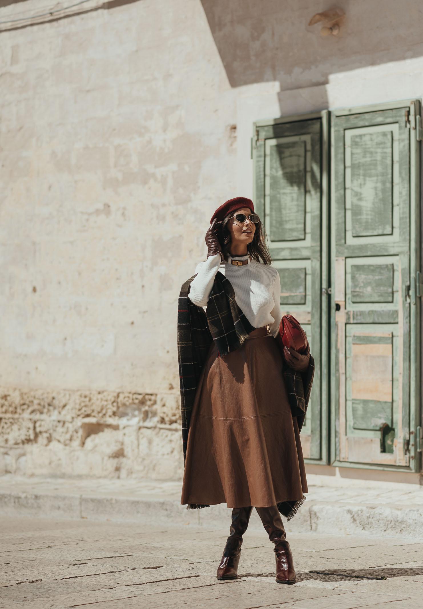 Gonna midi elegante cammello donna regular fit autunno inverno GO13656E2EC1