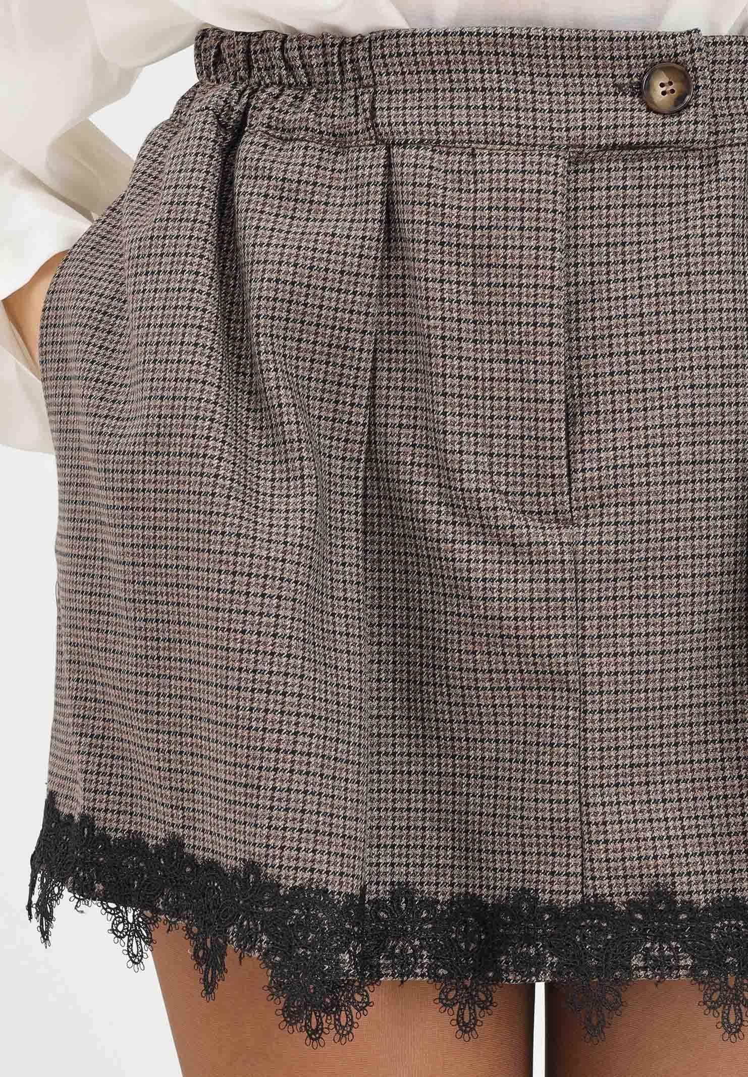 VICOLO Gonna corta da donna realizzata in tessuto principe di Galles nei toni del marrone e nero