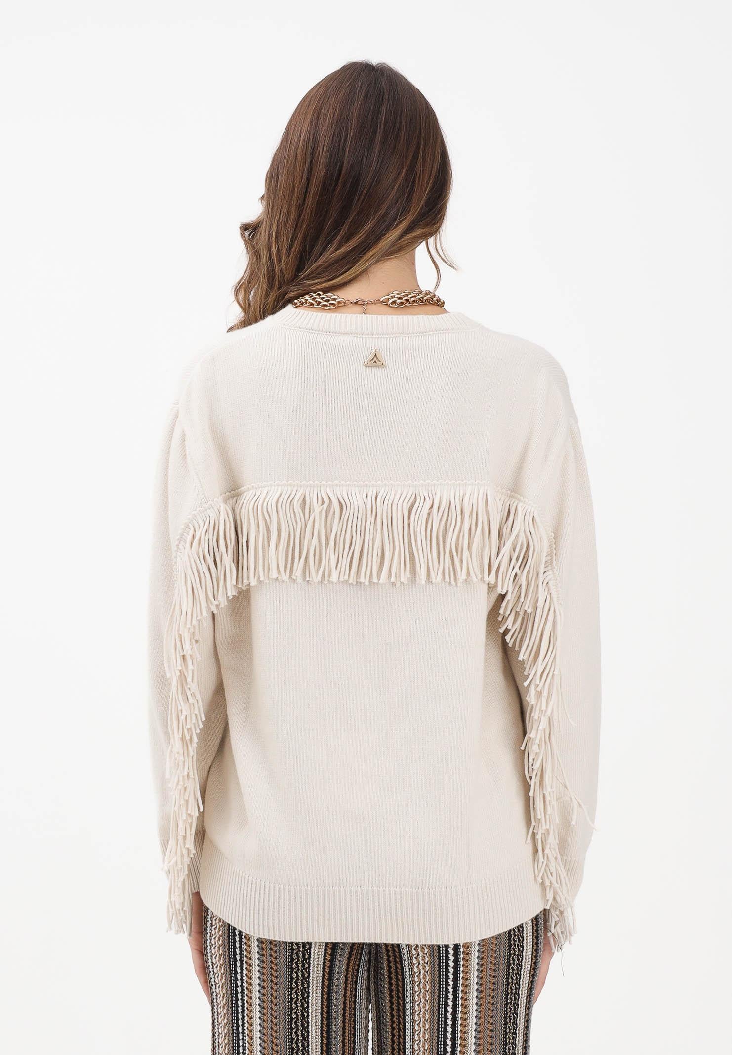 AKEP Maglioncino girocollo panna da donna in maglia rasata con frange