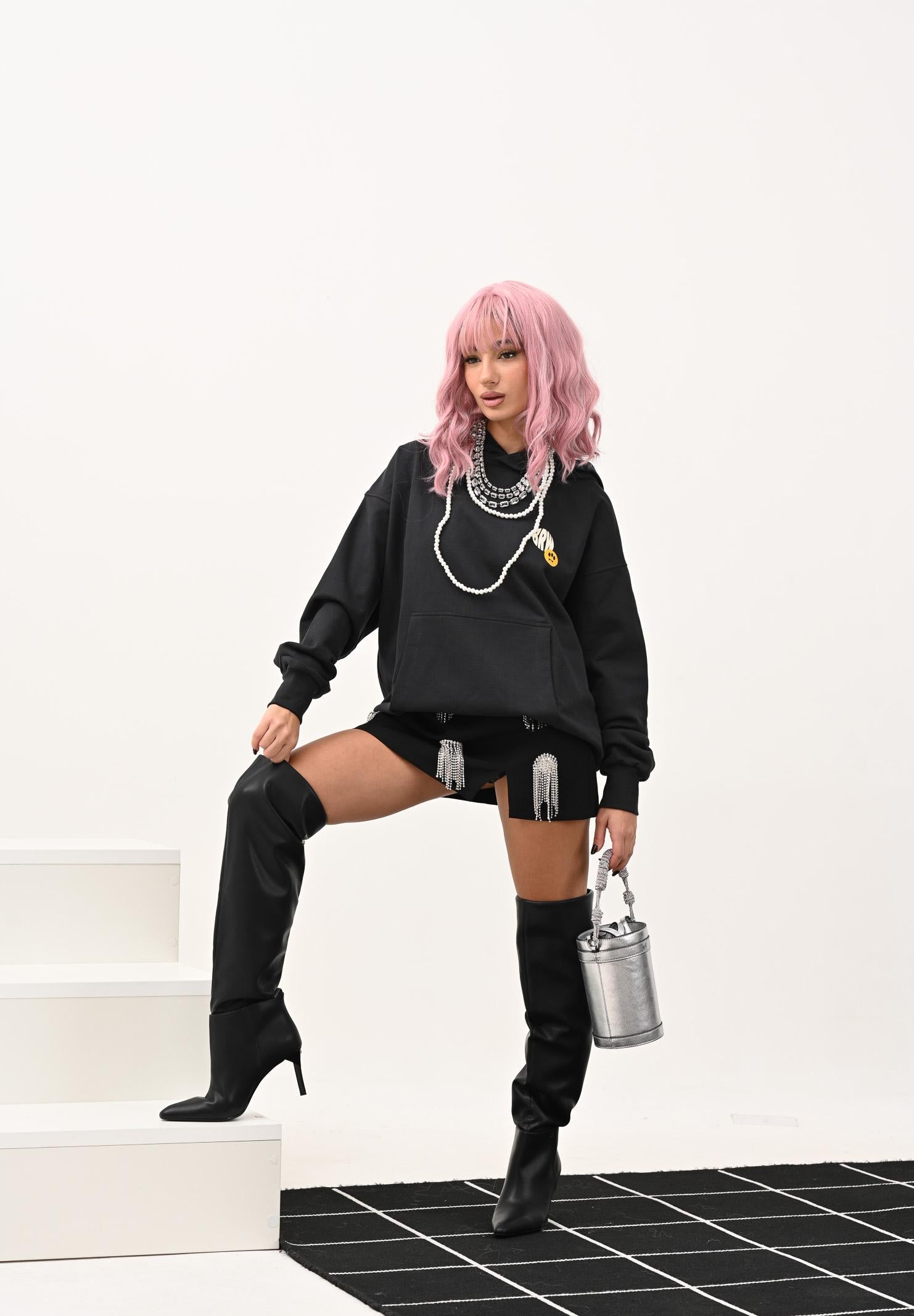 ODI ODI Gonna corta Asciano nera da donna. La linea dritta e corta valorizza le gambe, mentre il piccolo spacco frontale aggiunge un tocco sensuale senza rinunciare all'eleganza. Realizzata in tessuto compatto, veste con struttura e dona una silhouette femminile e slanciata. La vita alta la rende versatile da abbinare sia a top e bluse sofisticate che a capi più casual. Perfetta per completare look da sera o outfit moderni e decisi, soprattutto se indossata con stivali alti o décolleté. La modella indossa una taglia S ed è alta 170cm. Si consiglia una stiratura a media temperatura. Stagione autunno inverno.