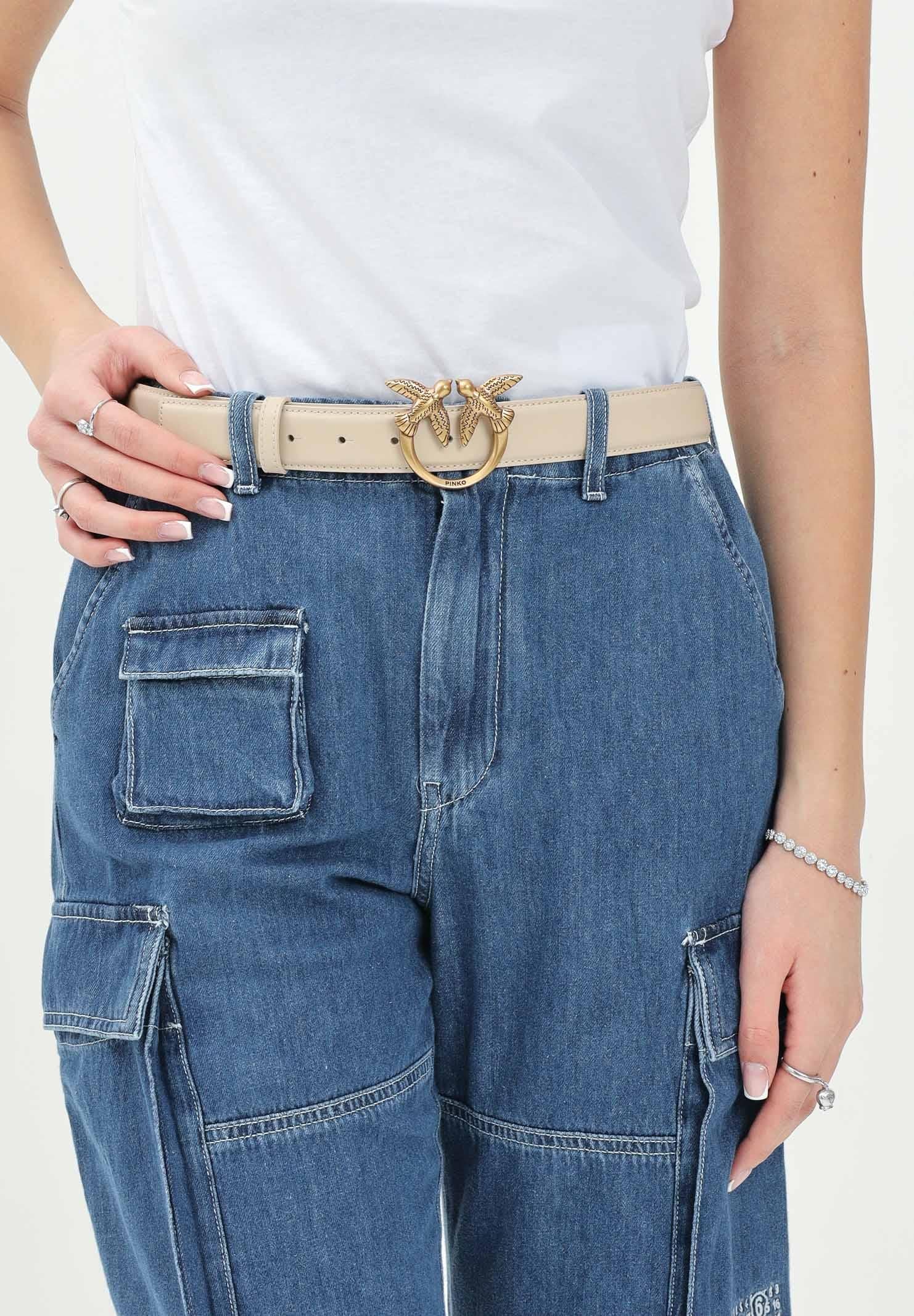 PINKO Cintura Love Birds in morbida pelle mano seta beige da donna