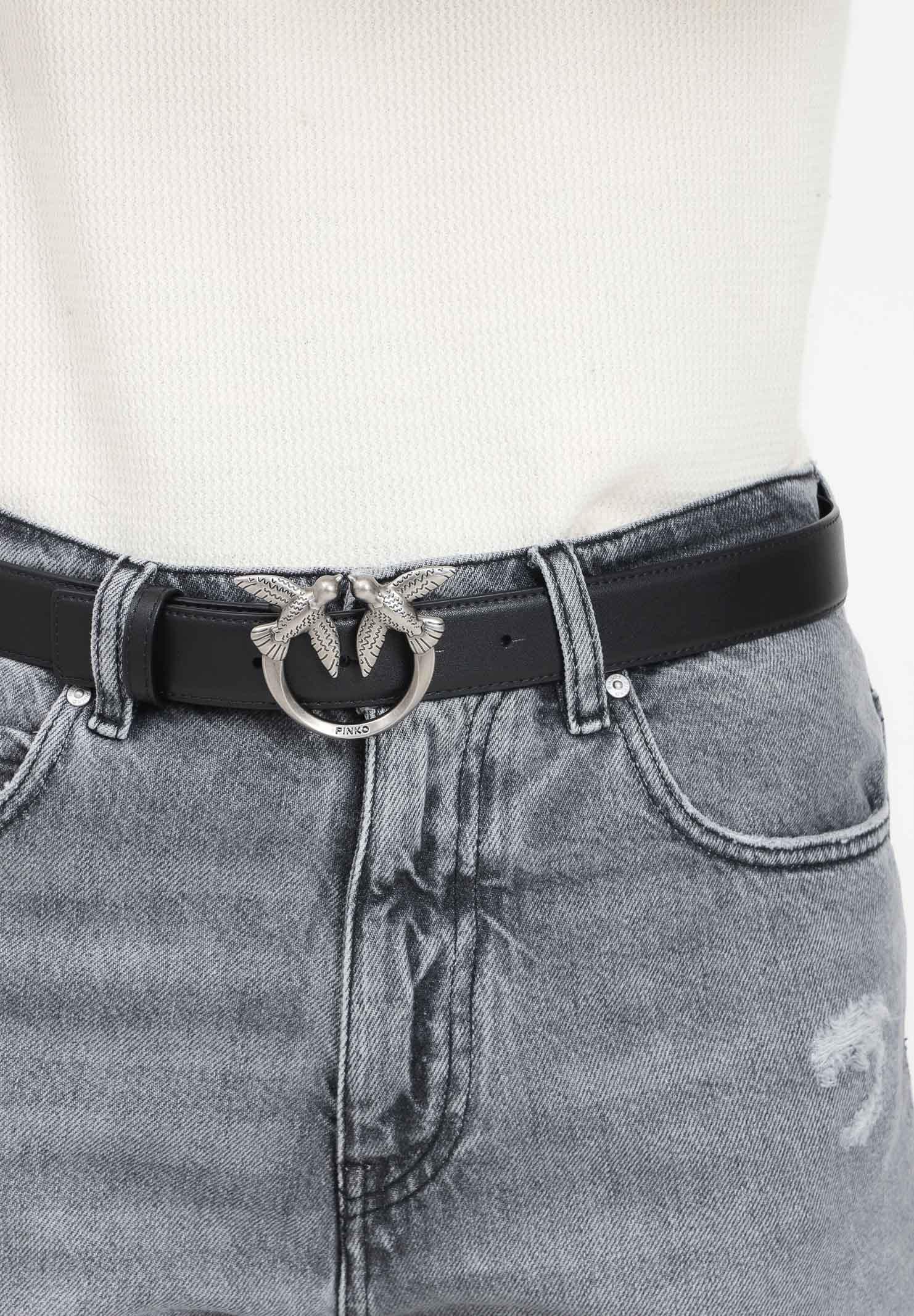 PINKO Cintura Love Birds in morbida pelle mano seta nera da donna