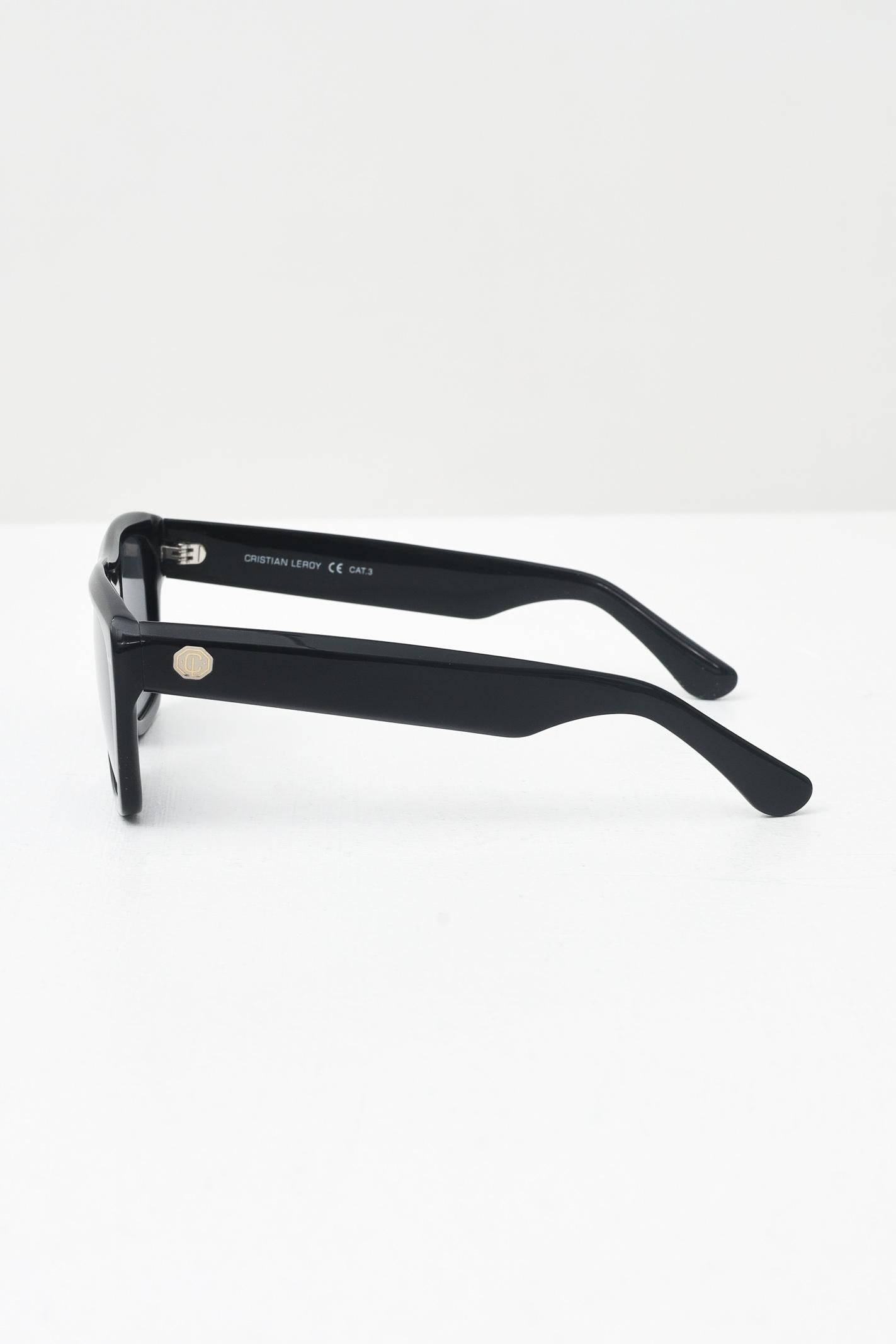 CRISTIAN LEROY Occhiali da sole neri per uomo e donna. Design deciso e stile intramontabile: questi occhiali Cristian Leroy presentano una montatura spessa in acetato nero lucido, con lenti total black e forma squadrata. Le aste robuste sono impreziosite dal logo dorato CL in rilievo. Ideali per chi cerca un look forte e contemporaneo, con un tocco di eleganza urban. Stagione primavera estate.