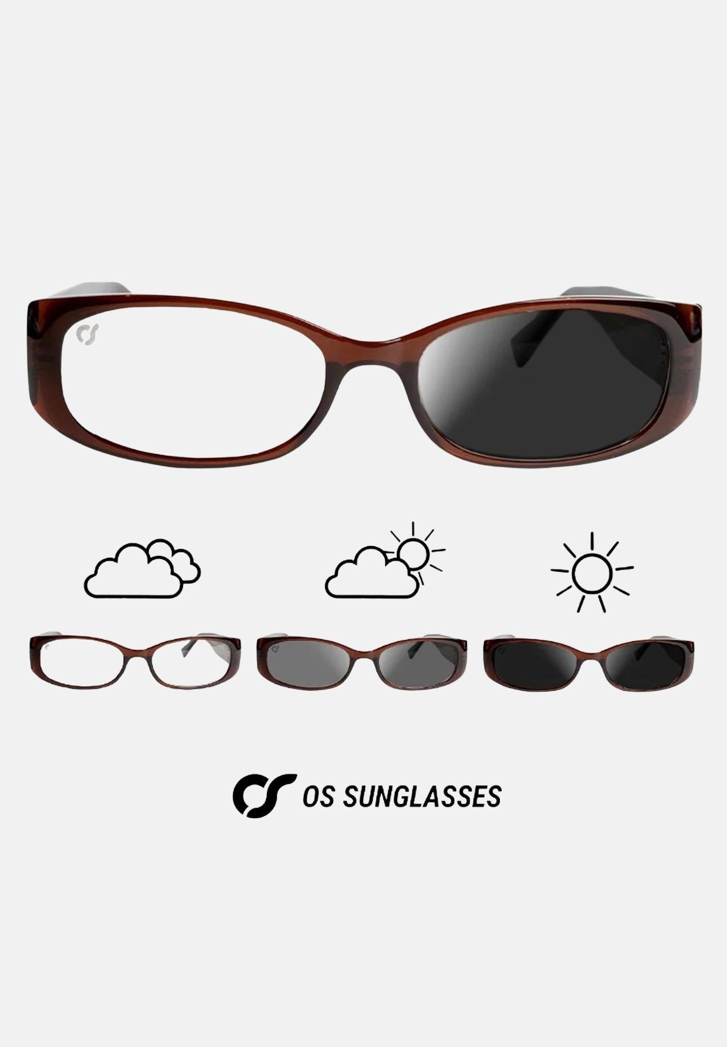 OS SUNGLASSES Occhiali da sole marroni da donna modello Victoria Photochromic. Il modello VICTORIA unisce stile moderno e funzionalità grazie a una montatura audace e lenti fotocromatiche, che si adattano alla luce per un comfort ottimale. Le lenti fotocromatiche sono lenti che si adattano automaticamente alla luce, scurendosi all'aperto e schiarendosi in ambienti chiusi, offrendo comfort visivo e protezione UV . Elegante, leggero e versatile, è ideale per un pubblico giovane e dinamico. Progettato con materiali di alta qualità, rappresenta una scelta innovativa e di tendenza nel panorama eyewear. Stagione autunno inverno.