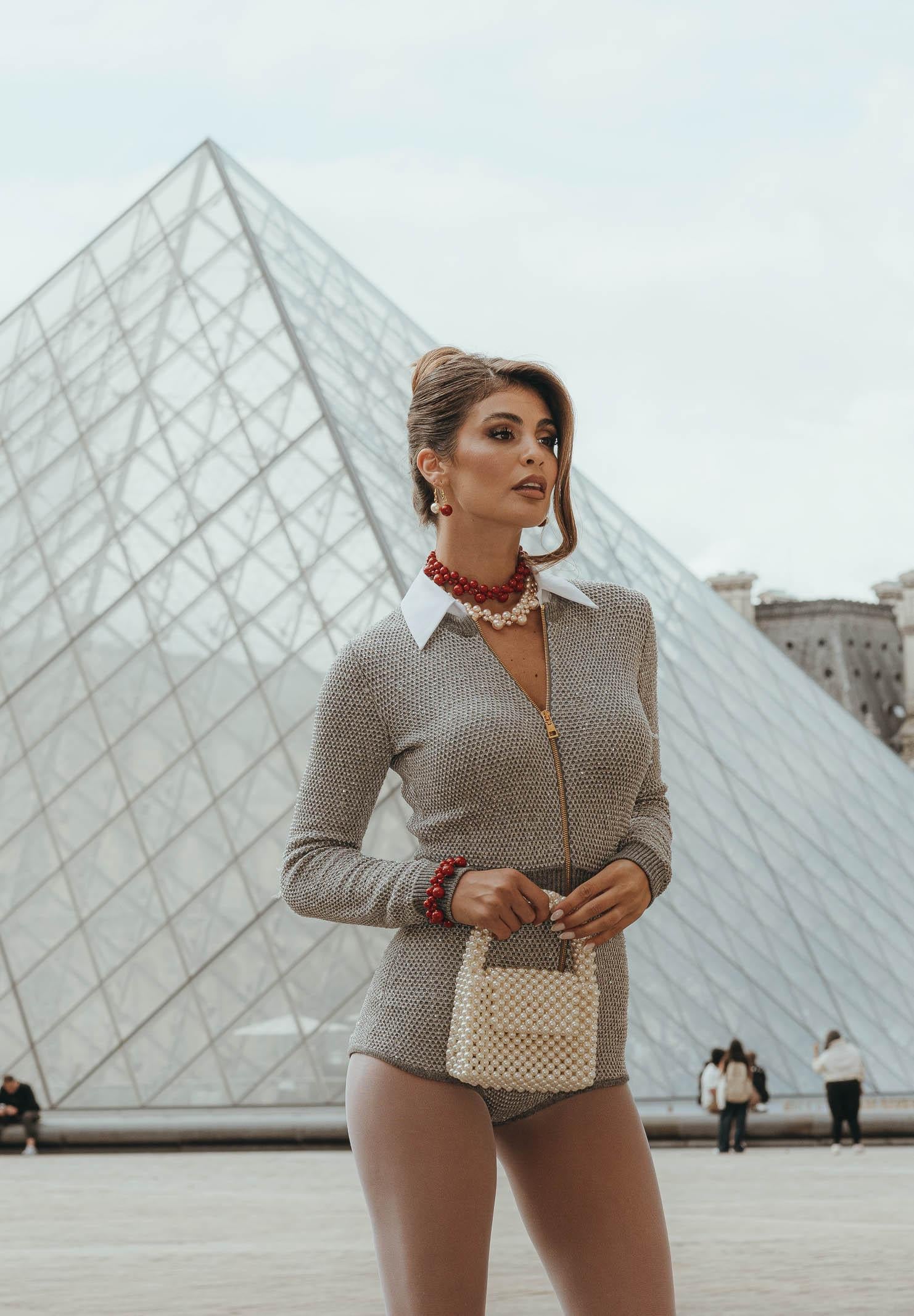 ELISABETTA FRANCHI Tuta elegante grigia da donna, caratterizzato da un design che unisce linee pulite a dettagli sofisticati. Realizzata in un tessuto grigio con trama leggermente brillante, avvolge la silhouette con una vestibilità aderente e femminile. Il modello presenta un colletto bianco a contrasto in stile camicia, che dona un tocco raffinato e formale, bilanciato dalla zip frontale dorata che percorre l'intera lunghezza del busto, aggiungendo modernità e praticità. La vita è evidenziata da una fascia a costine tono su tono, che valorizza la figura creando un effetto slanciato. Un capo perfetto per look serali o eventi particolari, da abbinare a décolleté o sandali gioiello per un effetto sofisticato e contemporaneo. La modella indossa una taglia 40 ed è alta 170cm. Si consiglia un lavaggio a mano. Stagione autunno inverno.