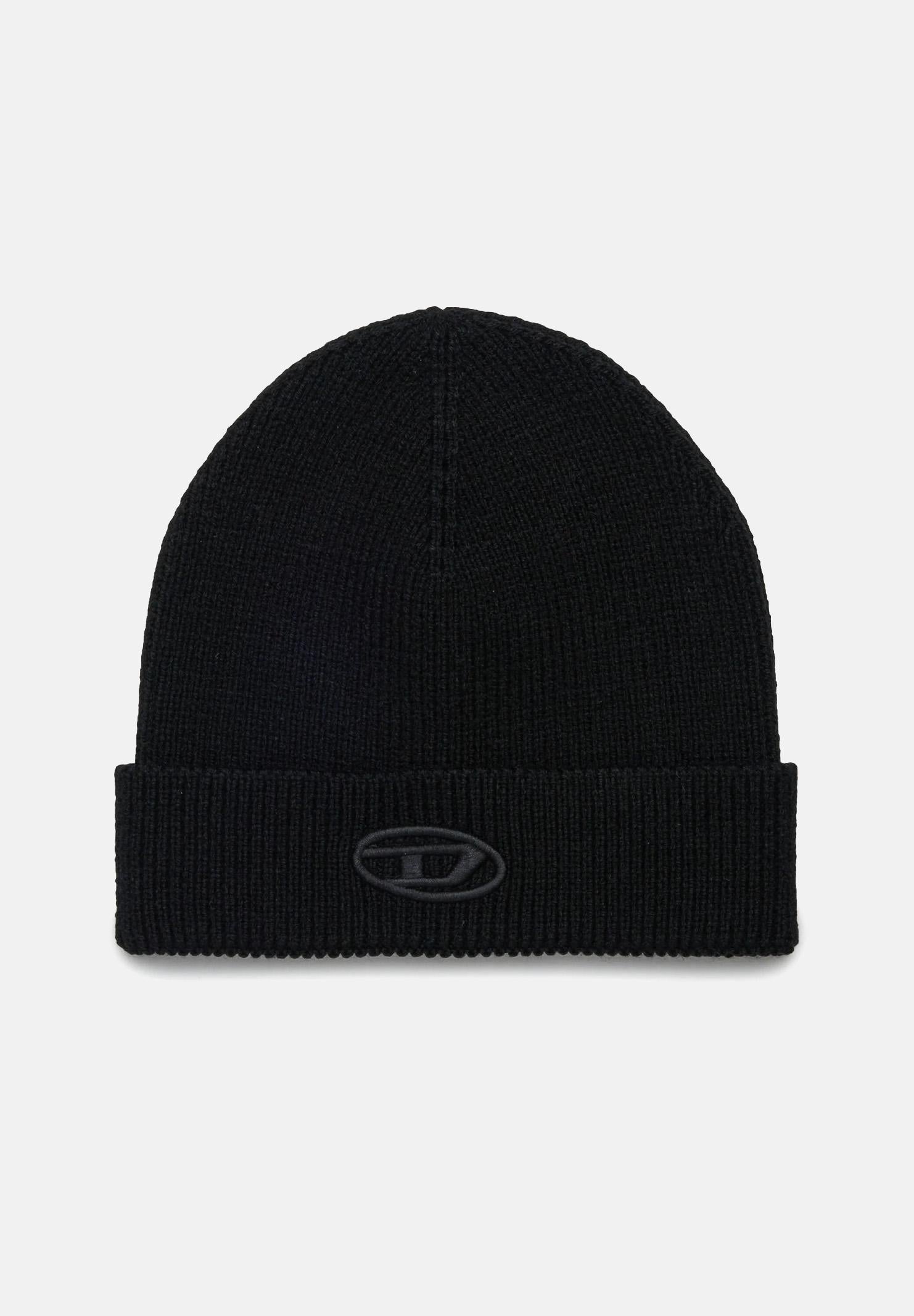 DIESEL Berretto di lana nero per uomo e donna con ricamo logo