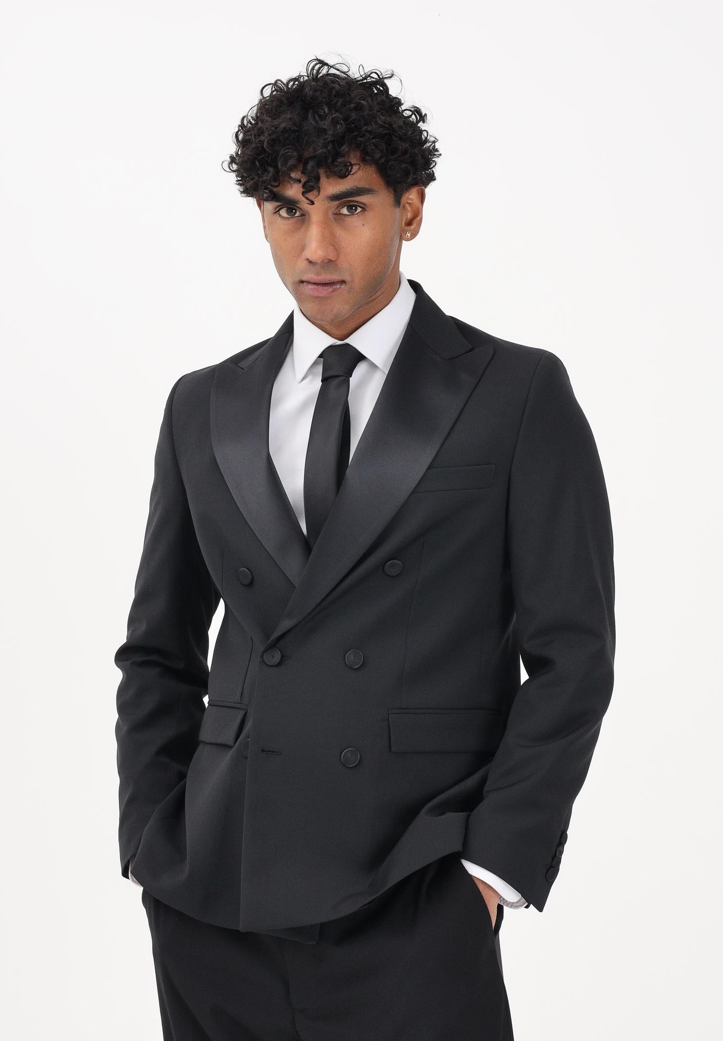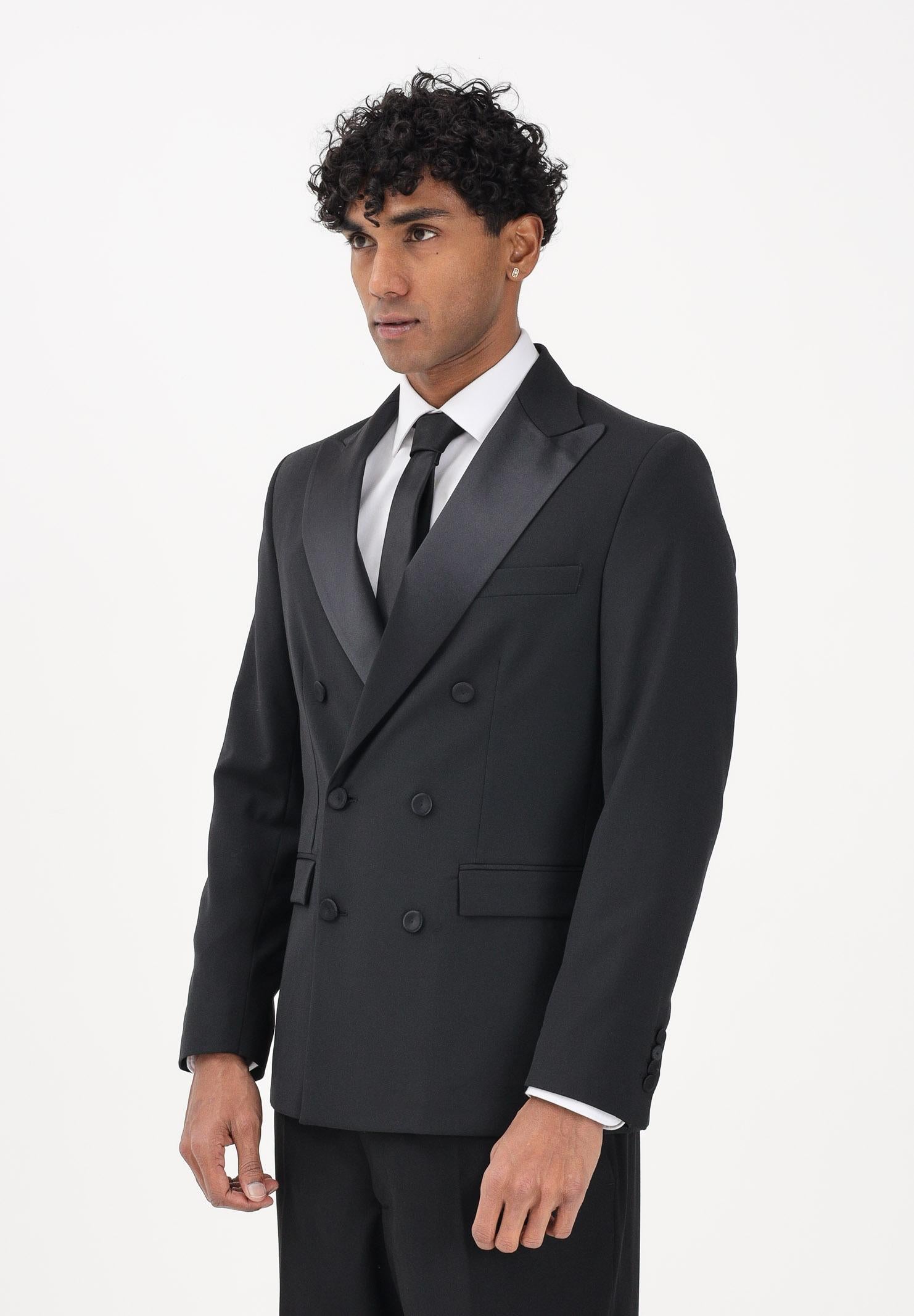 I'M BRIAN Giacca doppiopetto nera da uomo con rever in raso