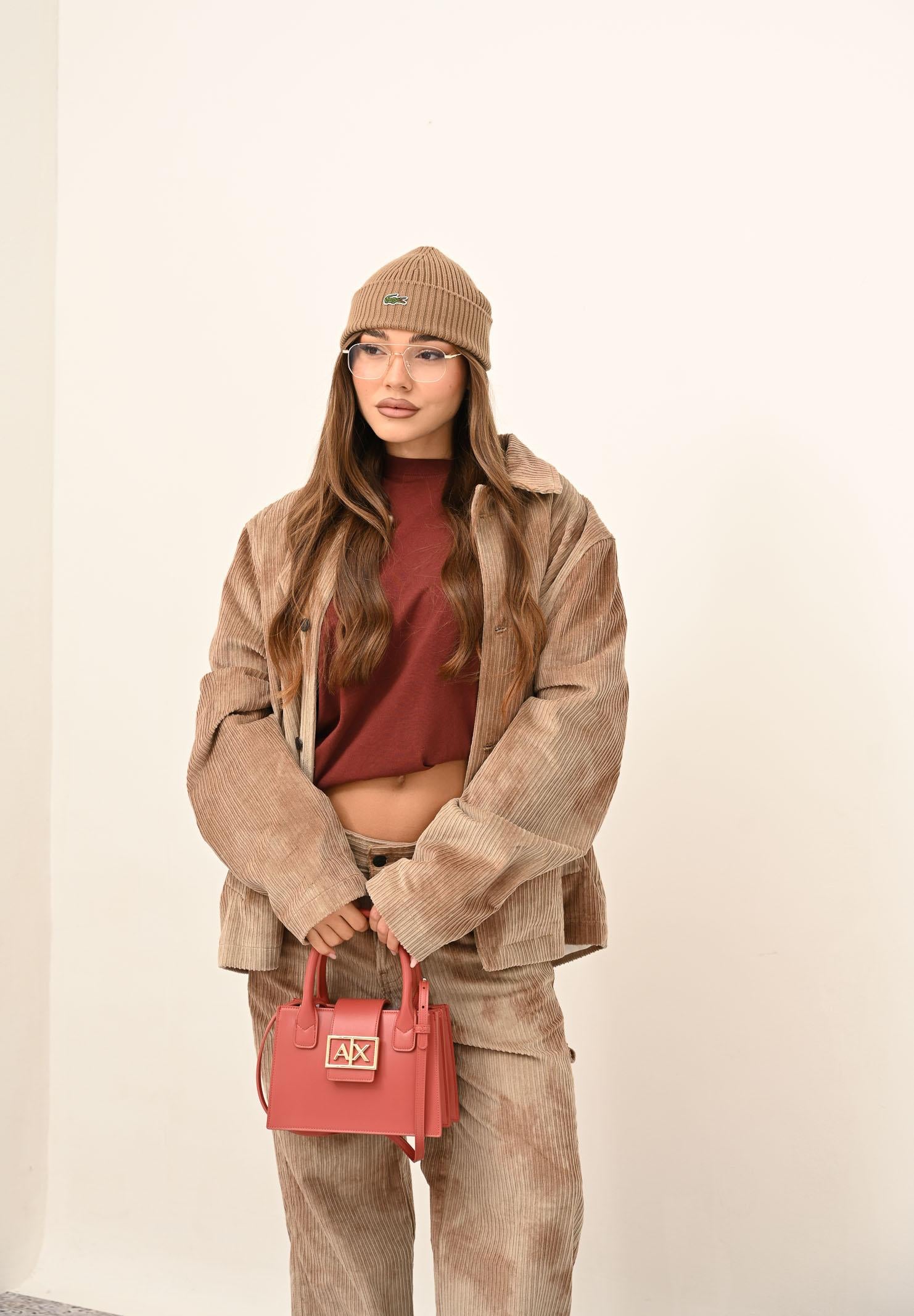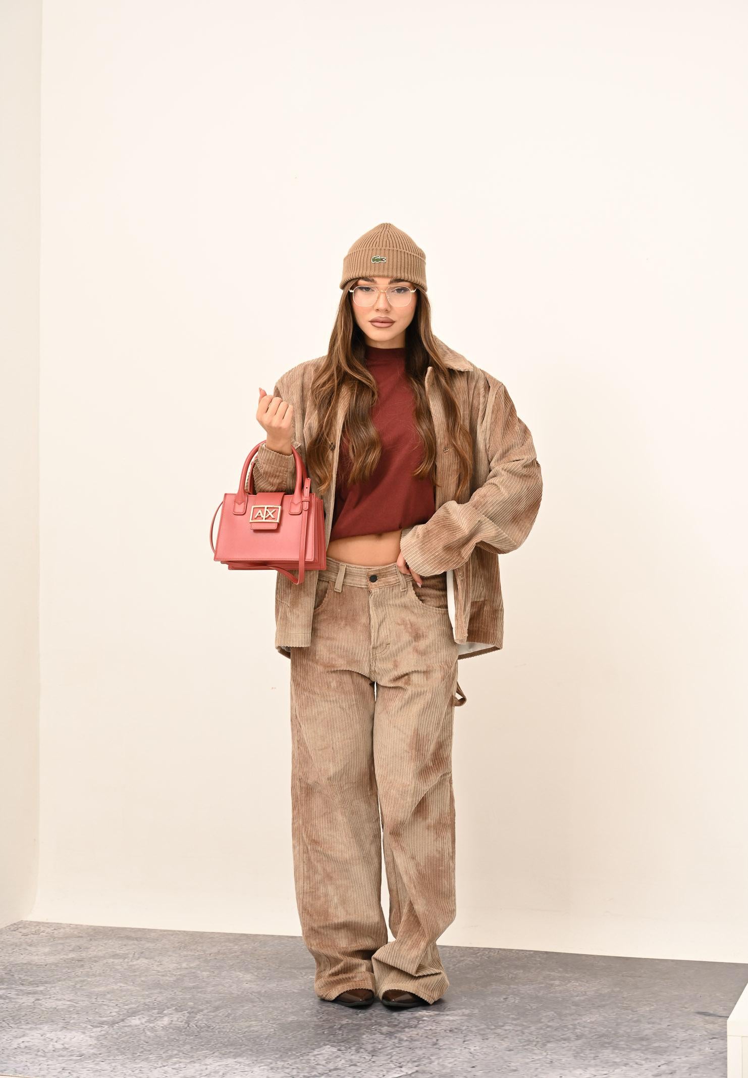 I'M BRIAN Giacca da uomo in velluto a coste color beige effetto tie-dye