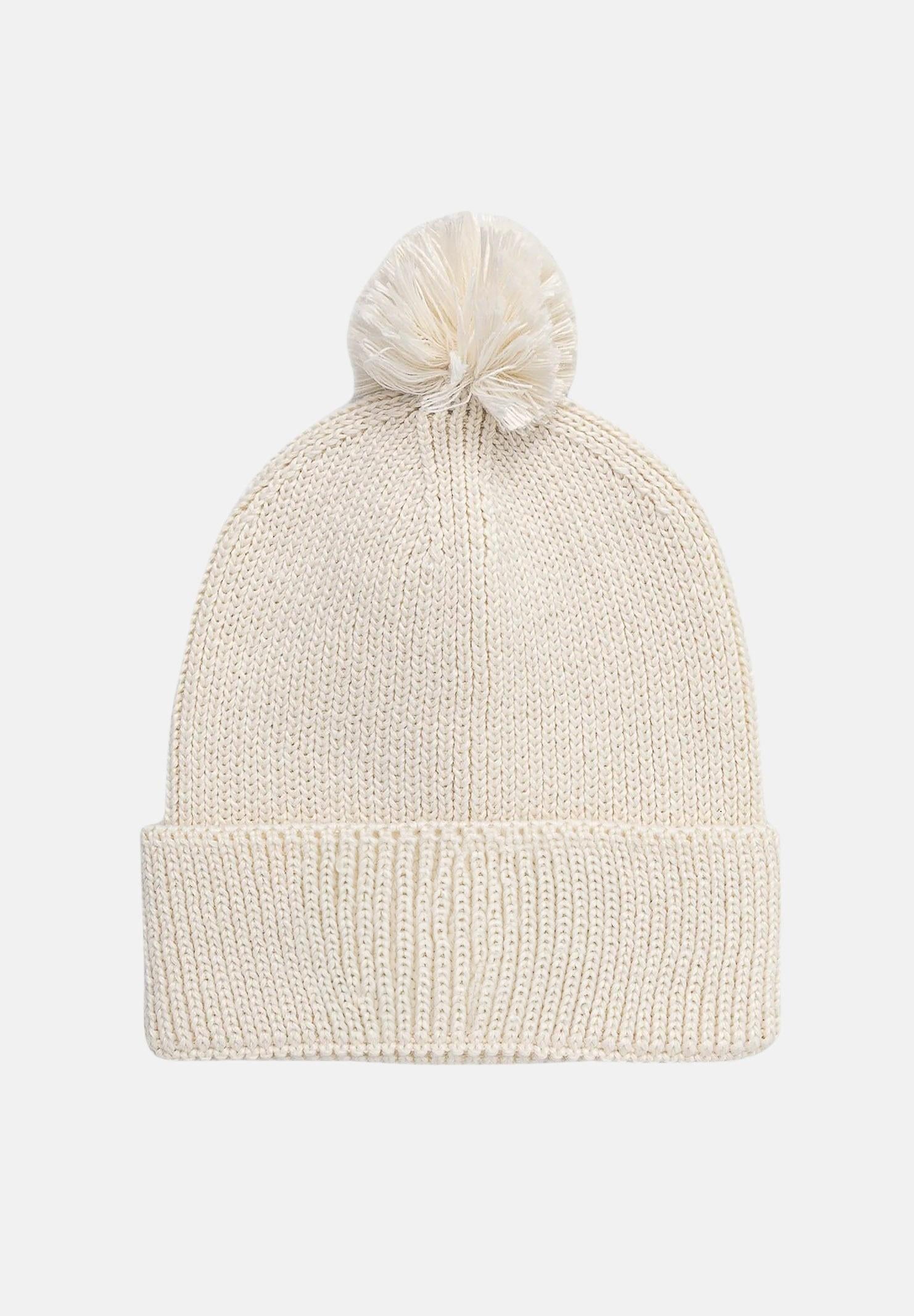 THE NORTH FACE Berretto di lana panna per uomo e donna con pompon e riquadro con logo TNF