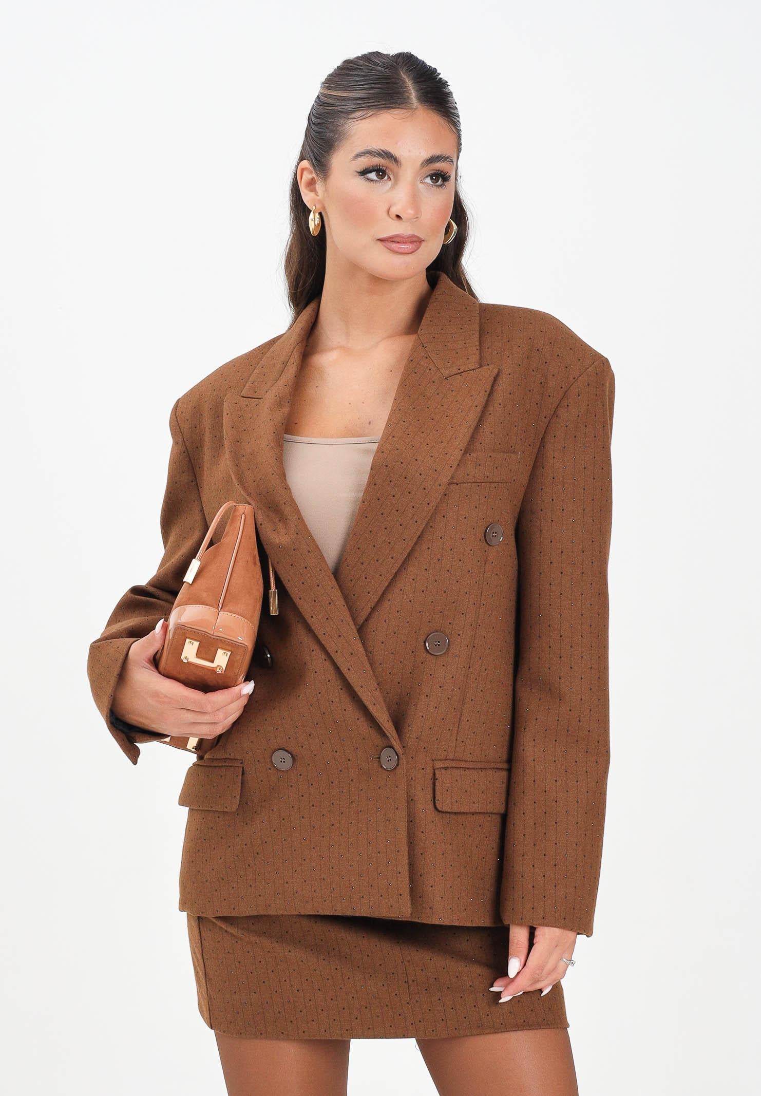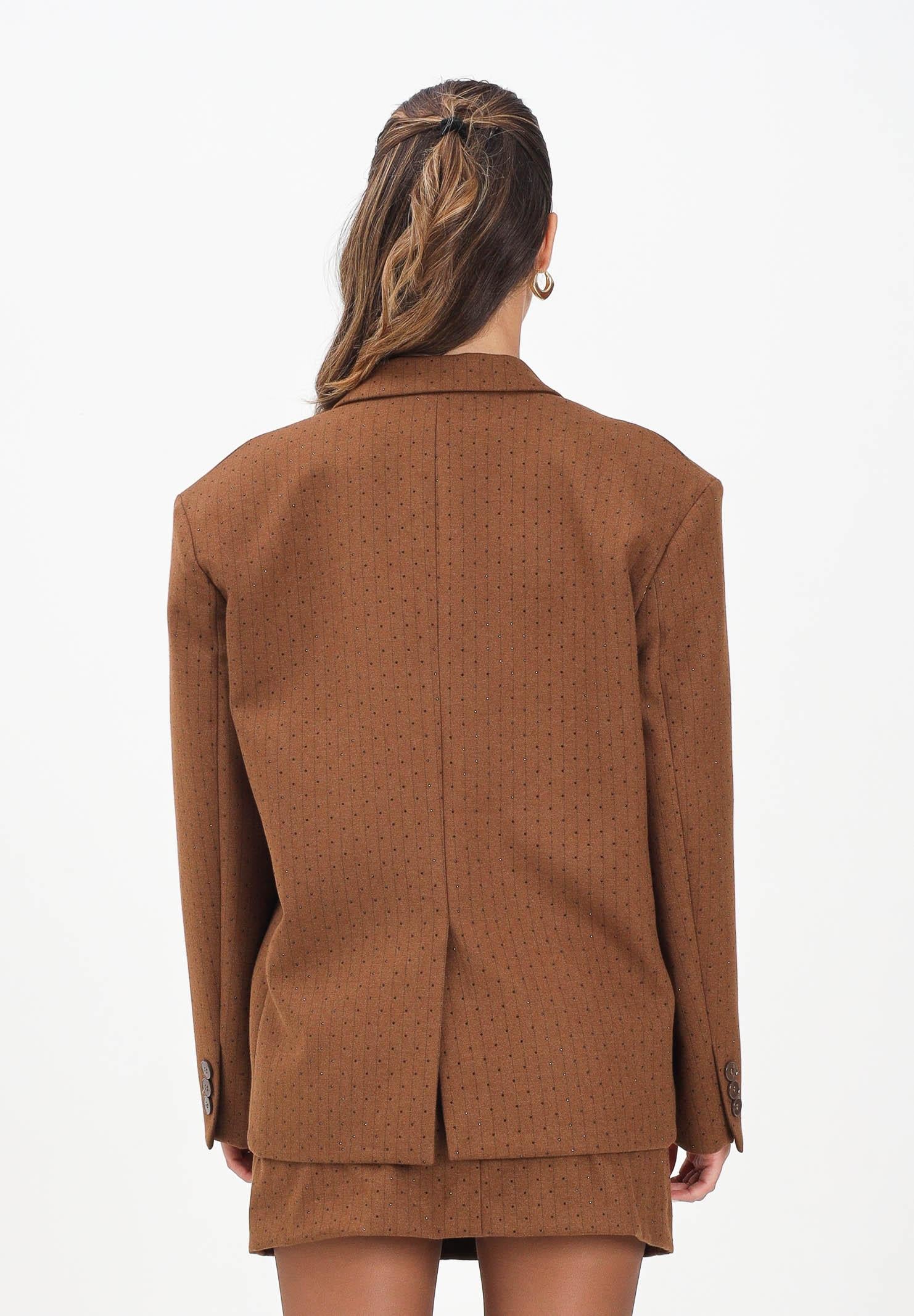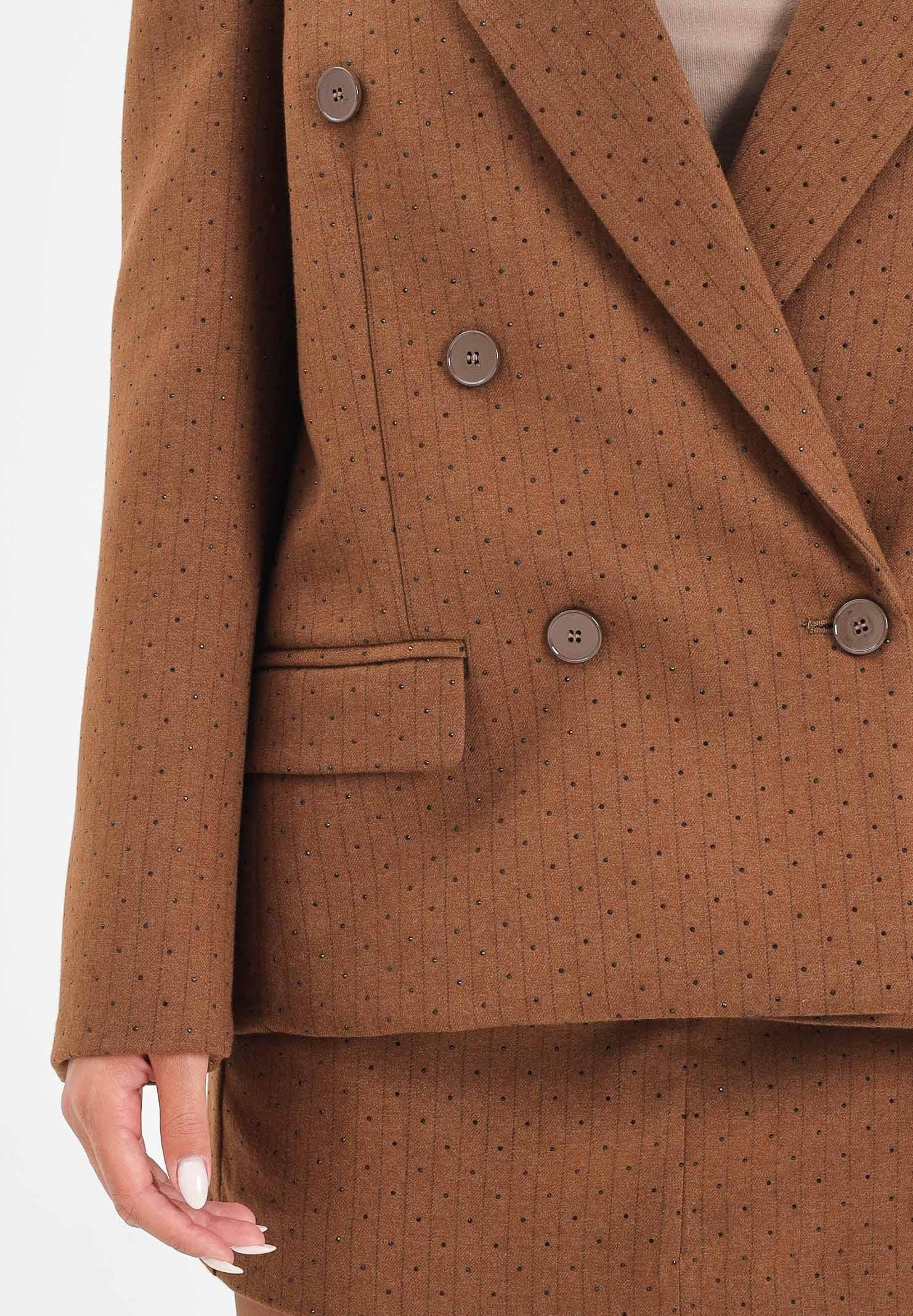 VICOLO Giacca doppiopetto cammello da donna con motivo gessato e strass