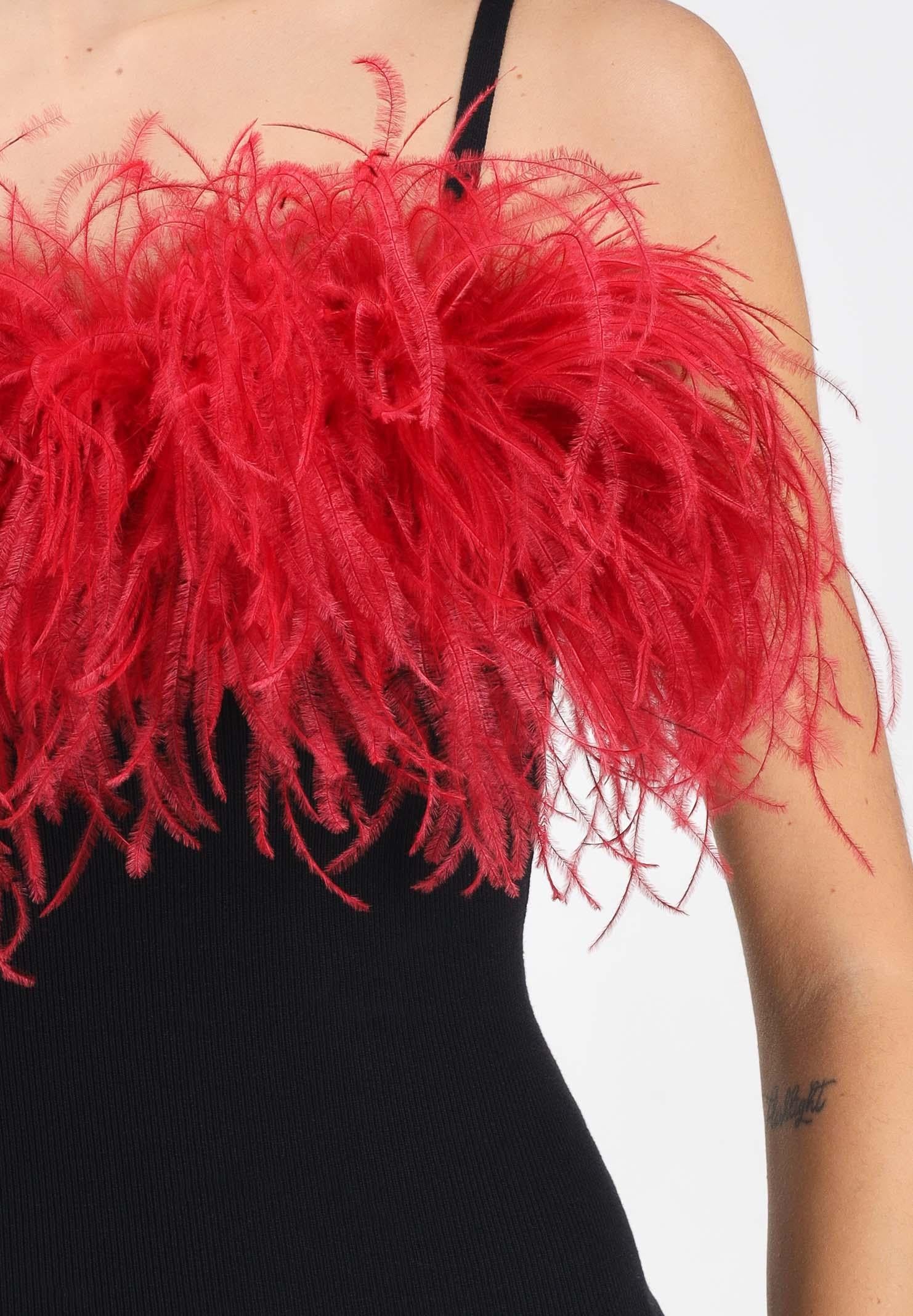 NOELL MAGGINI Schwarzes Midikleid für Damen mit burgunderfarbenen Federn