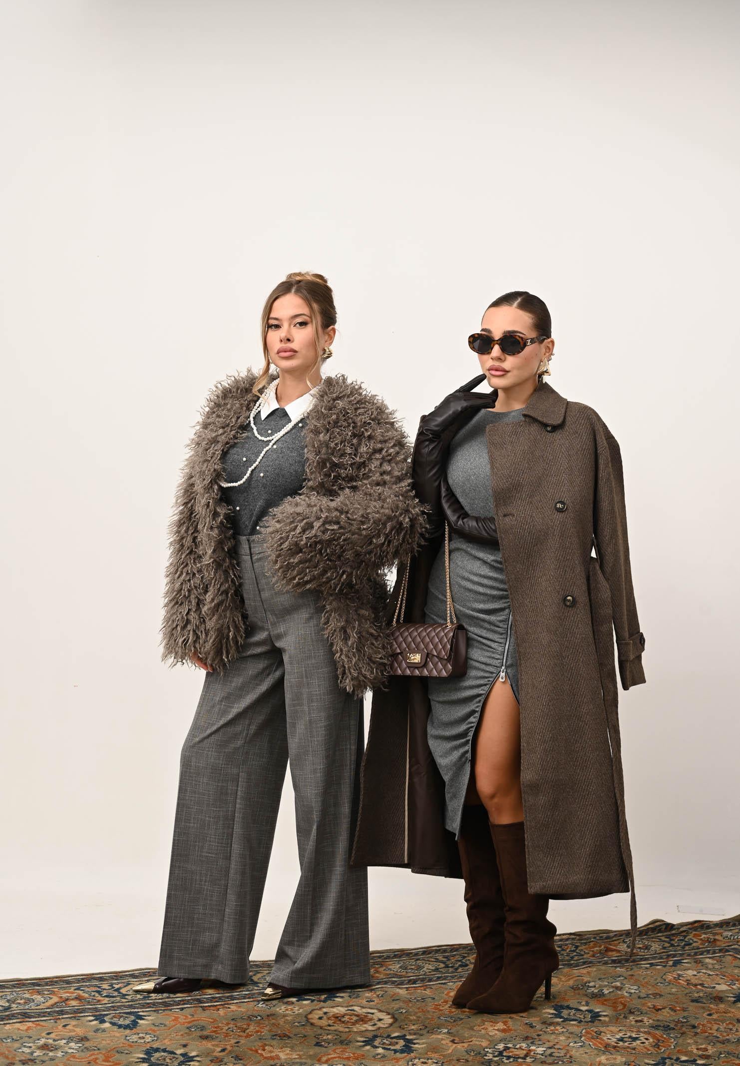 SIMONA CORSELLINI Elegante Damenhose in Grau mit gekreuztem Nadelstreifenmuster