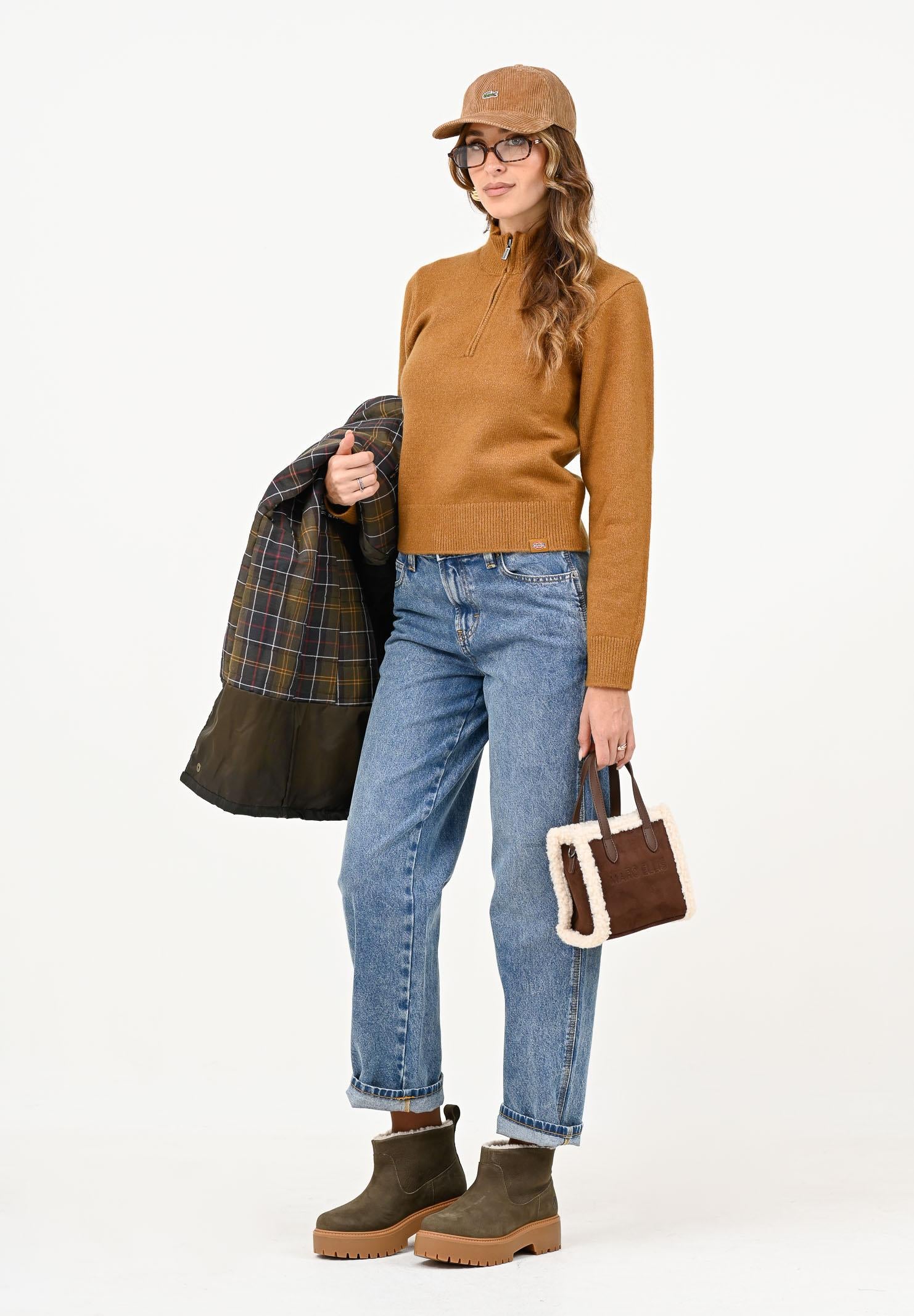 DICKIES Damen Ruston Rollkragenpullover in Camel. Der Ruston Halfzip Pullover ist ein warmer und bequemer Style, perfekt für die kälteren Monate. Mit Rollkragen und Stretchmaterial für eine bessere Passform, einem Metallreißverschluss, einem Dickies-Jacquardmuster auf der Rückseite und unserem ikonischen Label am Saum. Das Model trägt Größe S und ist 170 cm groß. Wir empfehlen Waschen und Bügeln bei mittlerer Hitze. Geeignet für Herbst/Winter.