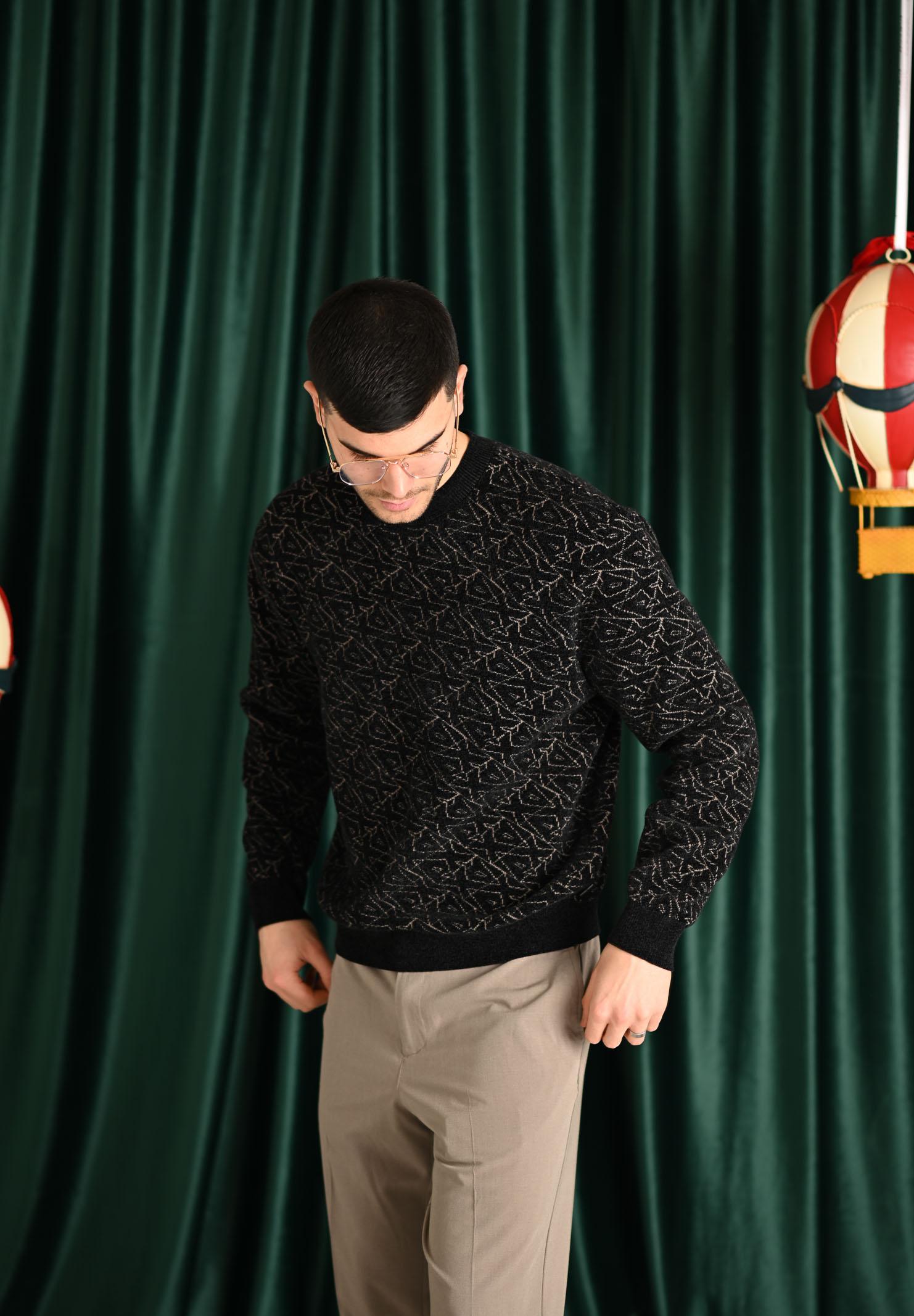 Schwarzer Herrenpullover mit Rundhalsausschnitt, normale Passform, Herbst/Winter XM001330AF16916FC196