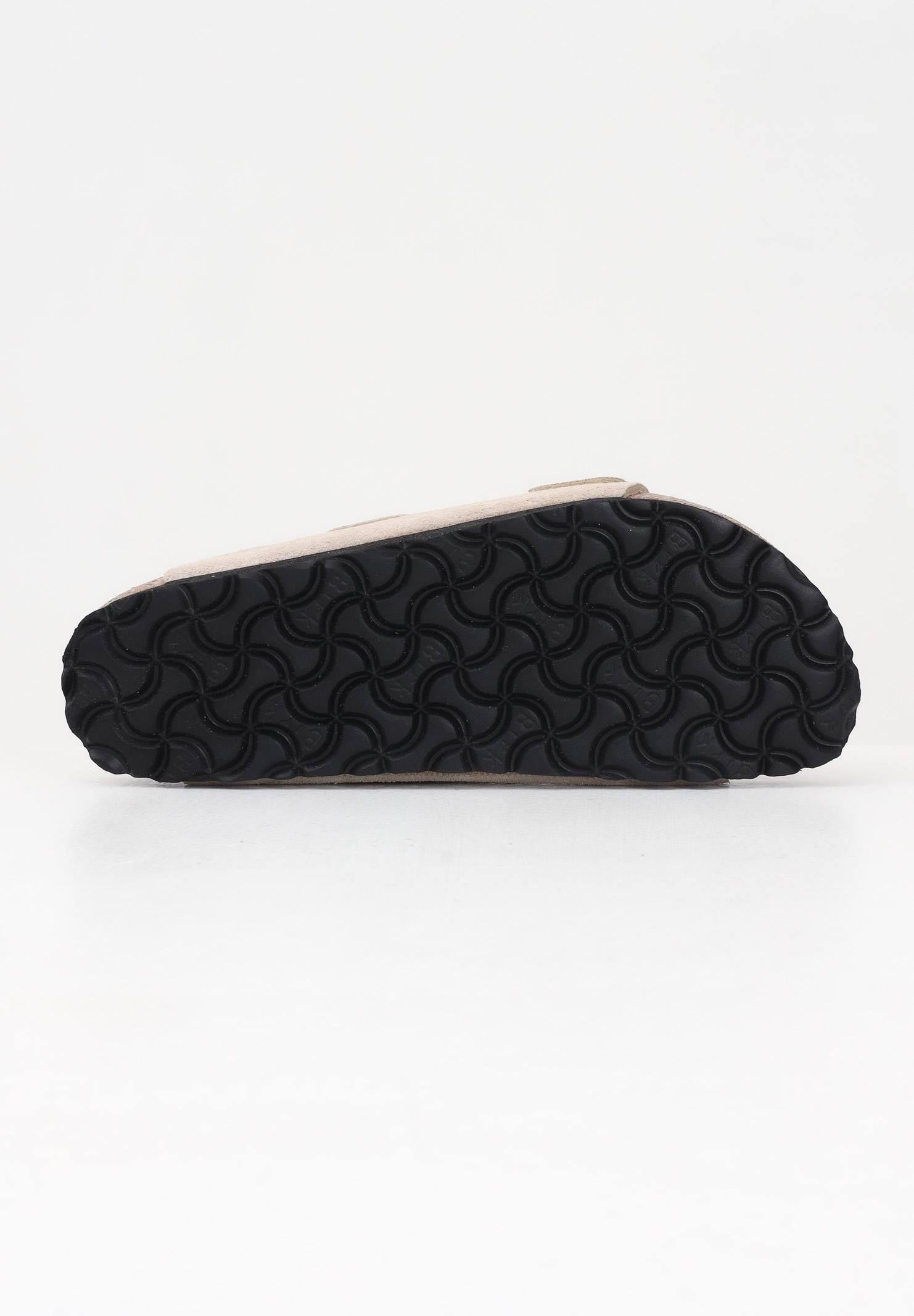 BIRKENSTOCK Arizona Herren-Sandale in Beige. Die BIRKENSTOCK Arizona Sandale besticht durch ihre hervorragende Passform und ihr sehr lässiges, natürliches Design. Dazu trägt auch das umhüllende, besonders weiche Obermaterial aus Veloursleder bei, das sich wie eine zweite Haut an den Fuß schmiegt. Erhältlich für die Herbst-/Wintersaison.