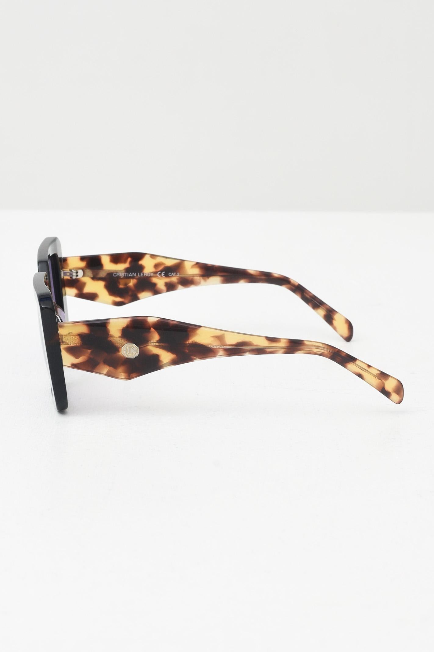 CRISTIAN LEROY Schildpatt-Sonnenbrille für Damen mit violetten Gläsern für einen Hauch von Originalität. Die breiten Bügel, immer in Schildpattoptik, vervollständigen ein markantes, aber ausgewogenes Modell – perfekt für alle, die gerne mit Stil auffallen. Filterkategorie 3, UV-Schutz. Herbst-Winter-Saison.