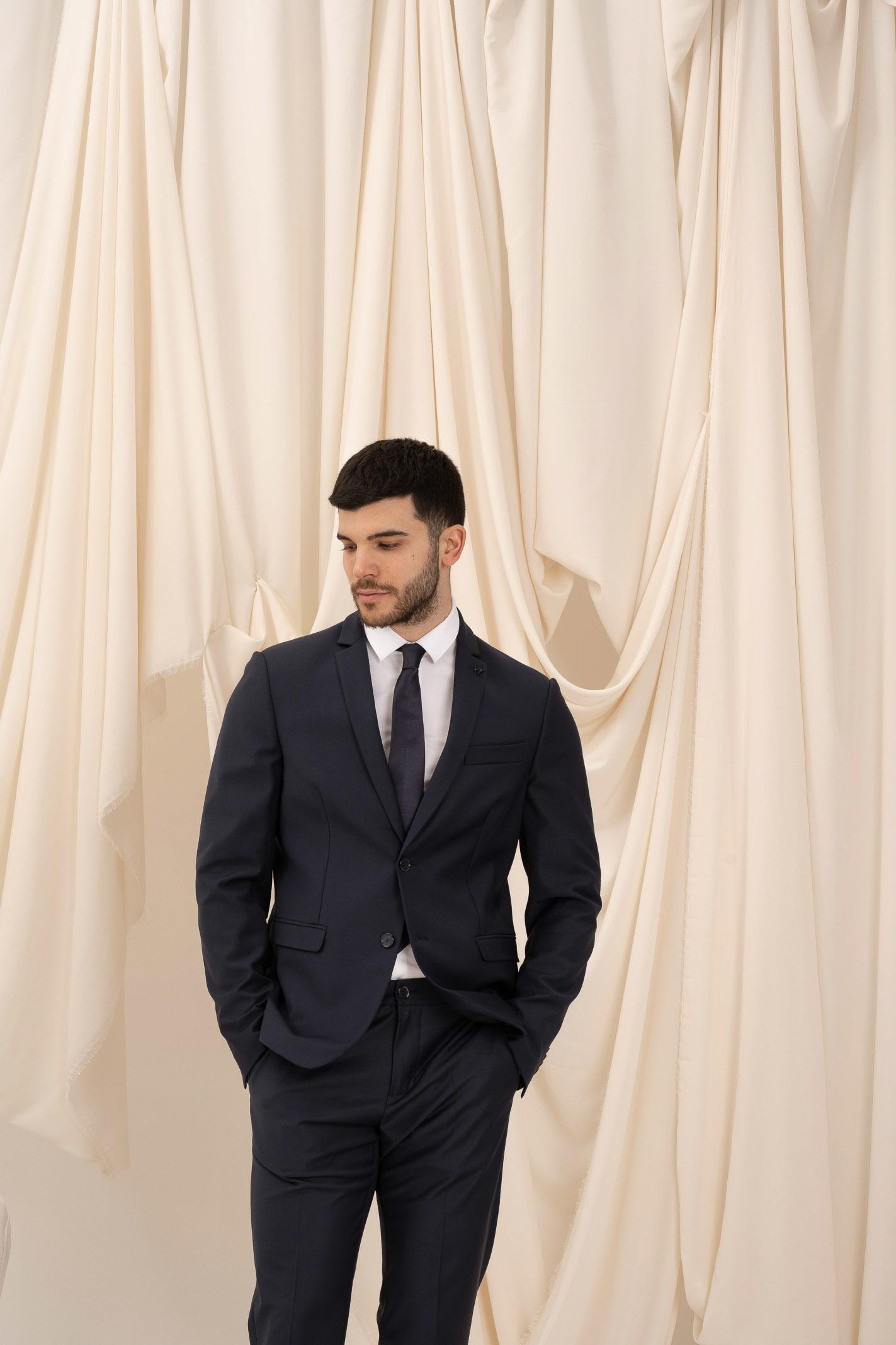 PATRIZIA PEPE Herrenjacke in Blau, perfekt für einen raffinierten und modernen Look. Der taillierte Schnitt betont die Silhouette, während der Zwei-Knopf-Verschluss und das klassische Revers einen Hauch von Klasse verleihen. Die Pattentaschen und die Brusttasche sorgen für Funktionalität und Stil. Ideal kombinierbar mit gemusterten oder unifarbenen Hemden für formelle Anlässe und besondere Abende. Das Model trägt Größe 46 und ist 187 cm groß. Bügeln bei mittlerer Temperatur wird empfohlen. Herbst/Winter.