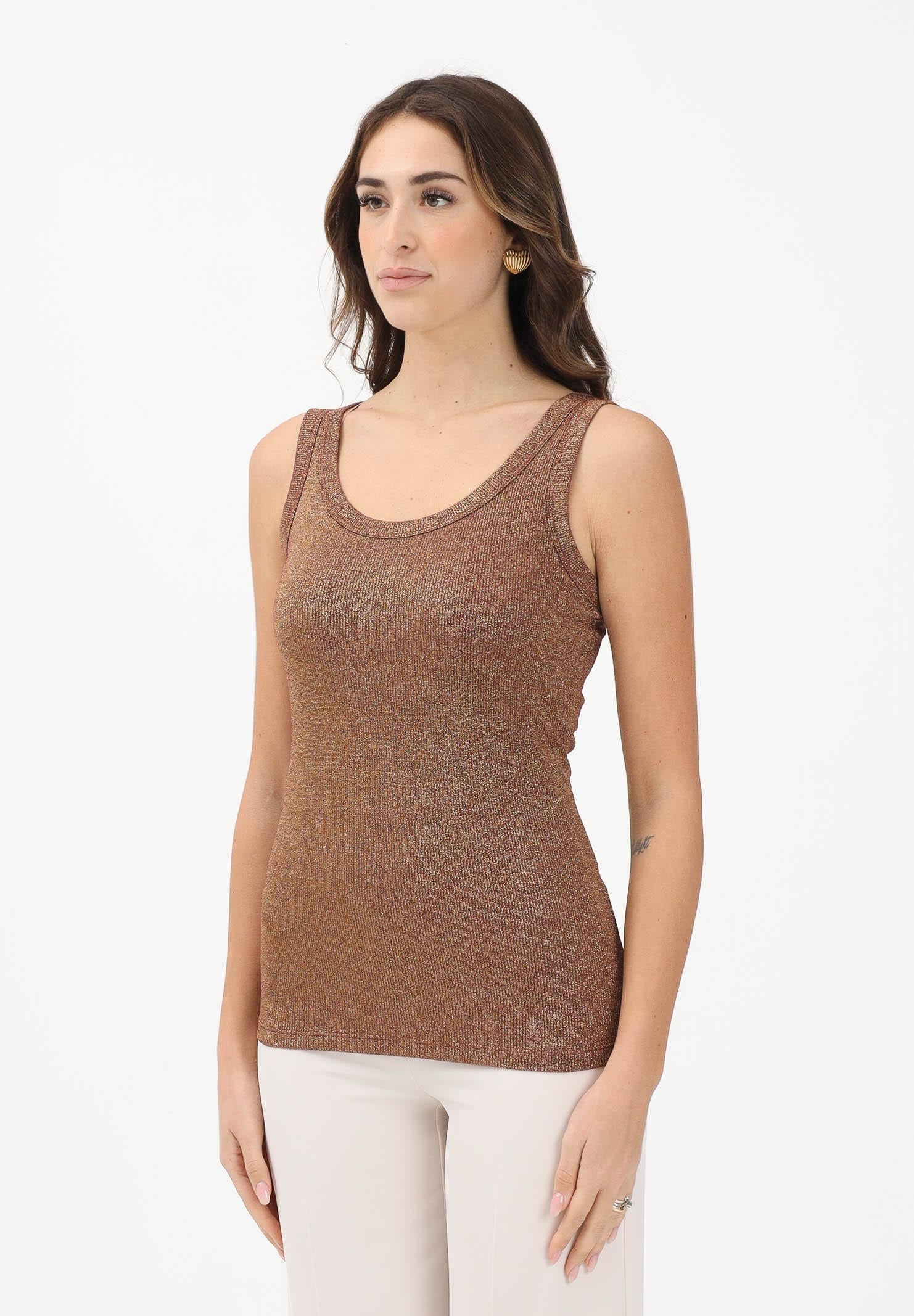 VICOLO Bronze Damen-Tanktop aus einem mit Lamégarn verarbeiteten Stoff.