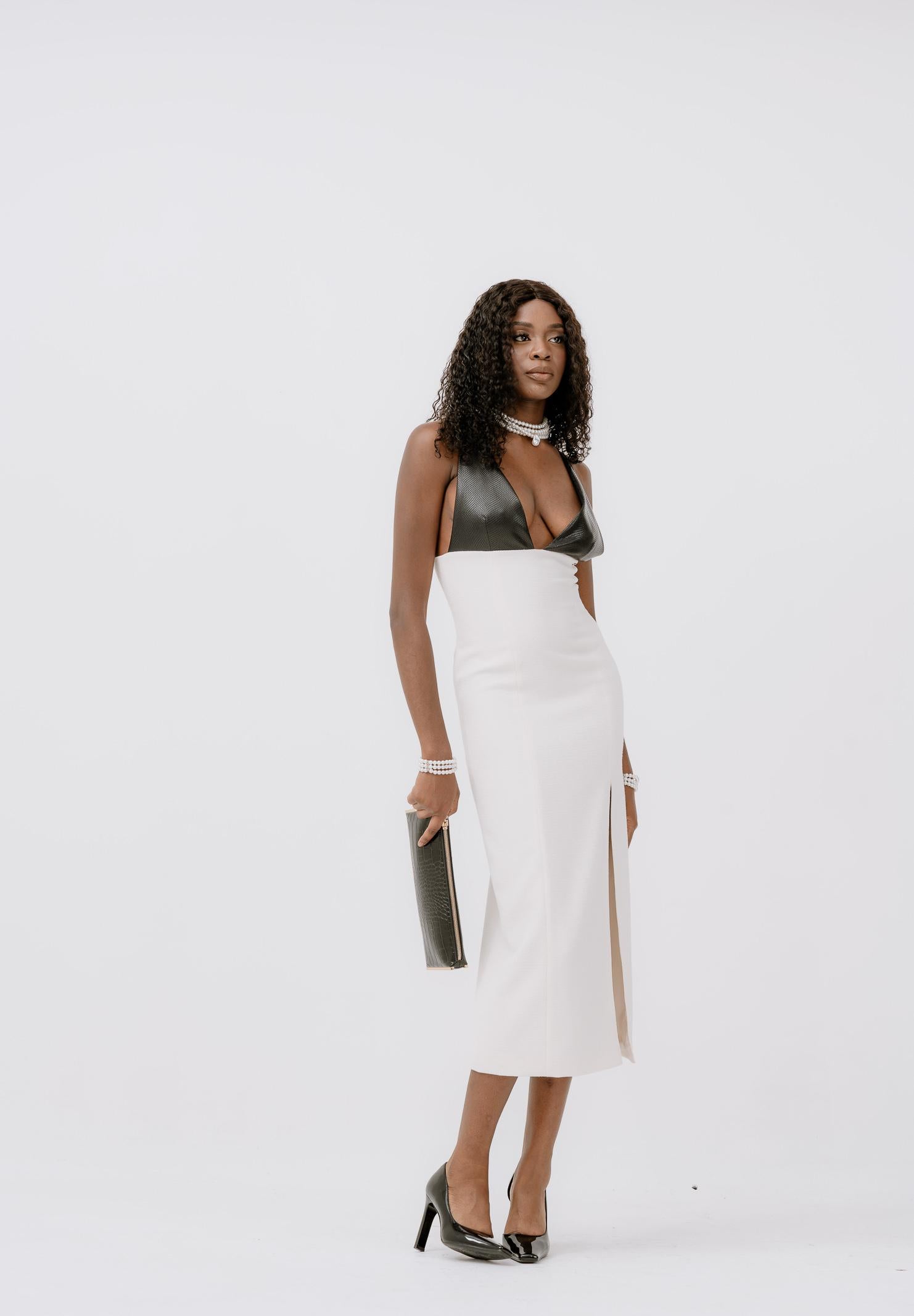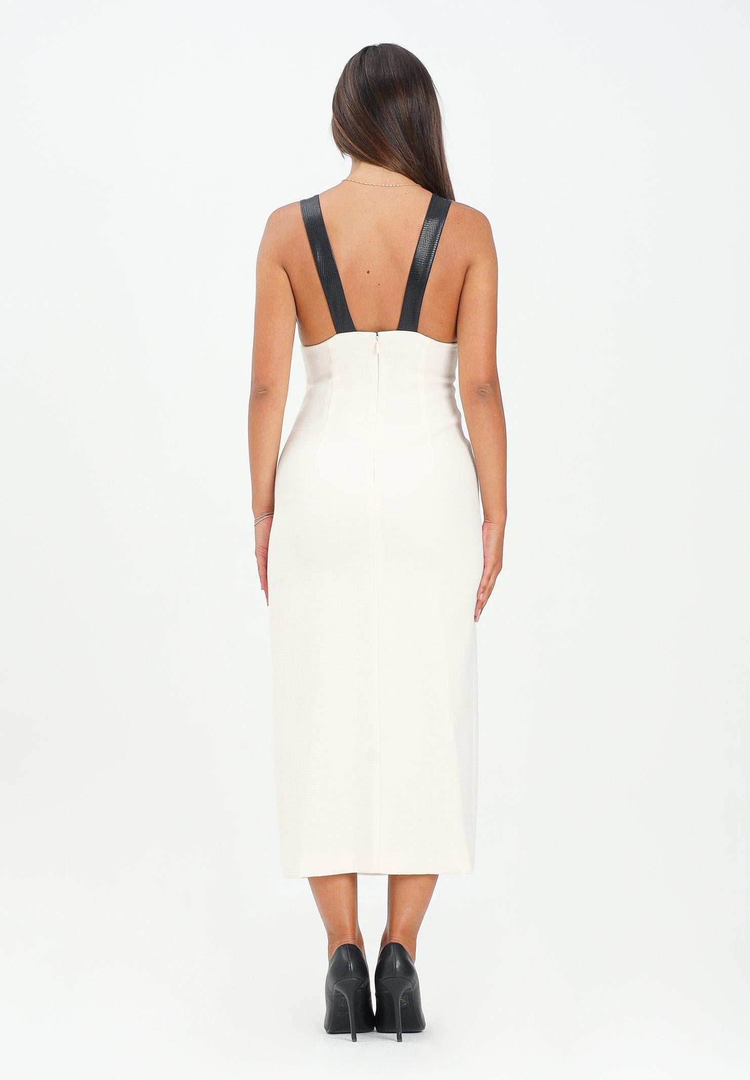 ARMANI EXCHANGE Langes cremefarbenes Damenkleid mit kontrastierendem Oberteil