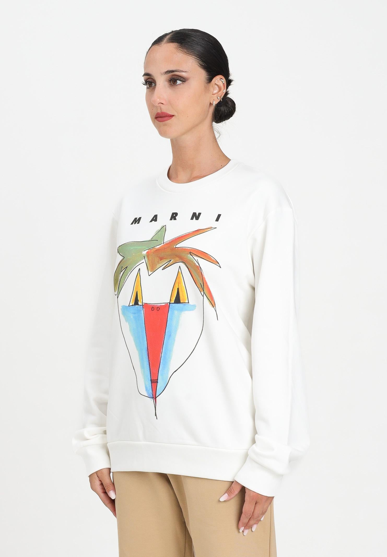 MARNI Weißes Rundhals-Sweatshirt für Damen, Teenager und Kinder mit Dschungel-Grafik
