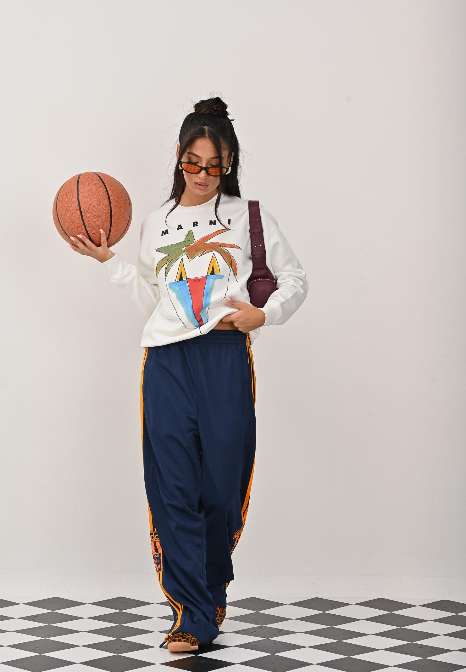 MARNI Weißes Rundhals-Sweatshirt für Damen, Teenager und Kinder in normaler Passform. Die Dschungel-Grafik macht dieses Stück zu einem Must-have für einen modernen und originellen Stil. Ein vielseitiges Kleidungsstück, das sich perfekt an Kinder, Teenager und Damen anpasst und bequem bis Größe 44 sitzt. Die Frau trägt Größe 14, das Mädchen 12 und der Junge 10. Wir empfehlen Waschen und Bügeln bei mittlerer Hitze. Herbst/Winter.