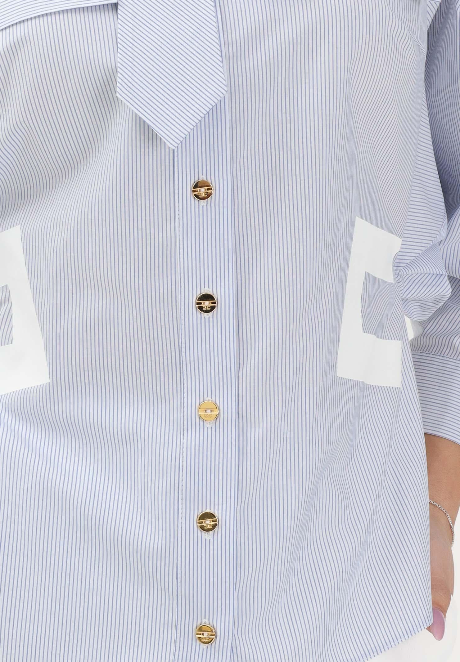 ELISABETTA FRANCHI Weißes Damen-Dreiviertelarm-Hemd mit hellblauem Streifenmuster