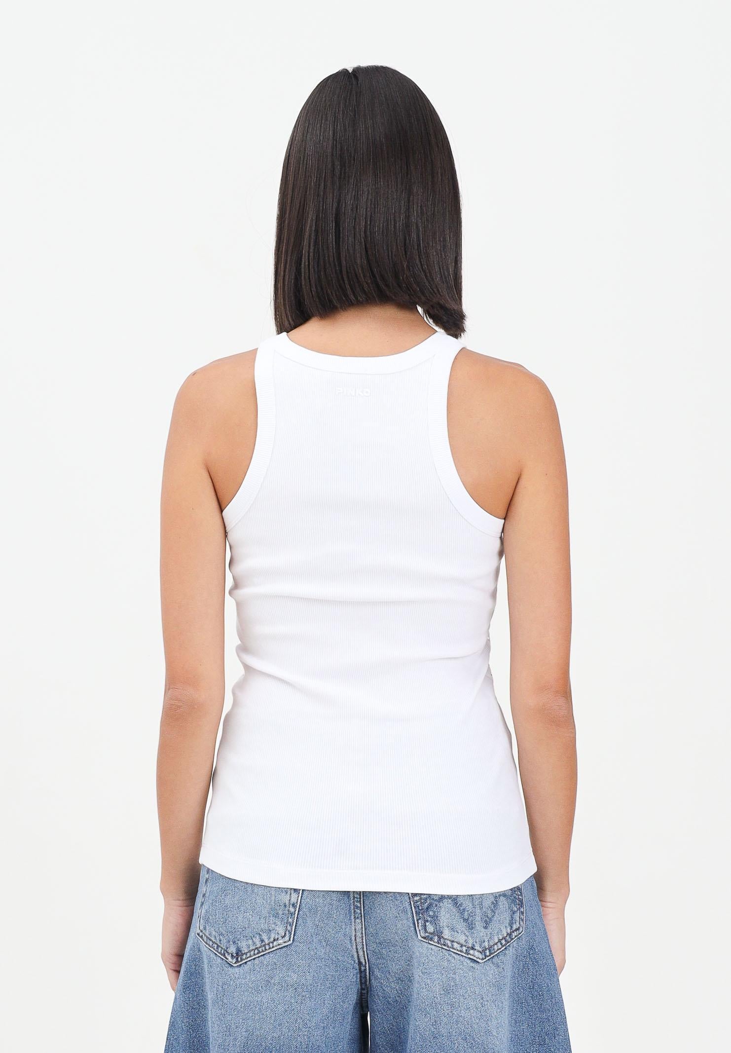 PINKO Damen weißes Tanktop mit Strass und Nieten