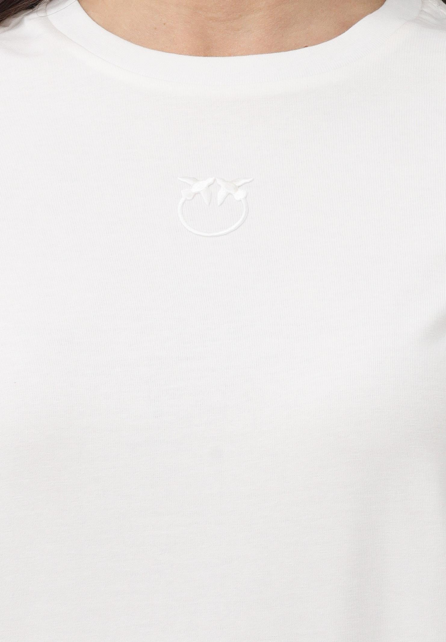 PINKO Damen-T-Shirt, weiß, Kurzarm, mit gesticktem Liebesvogel-Logo.