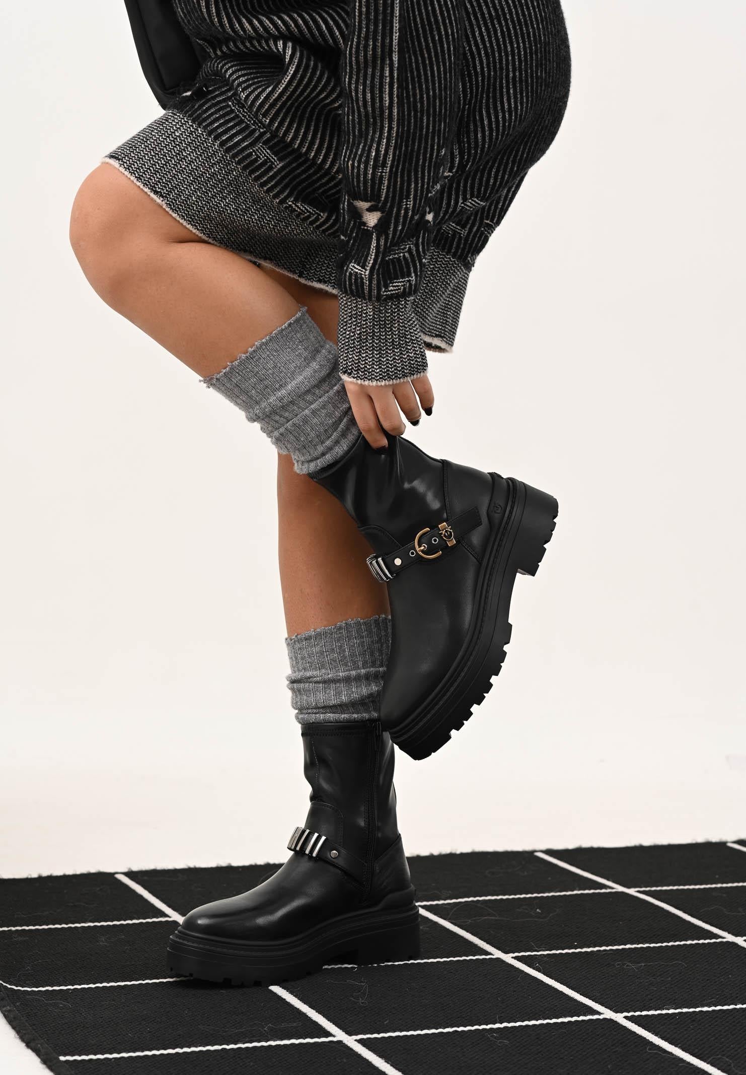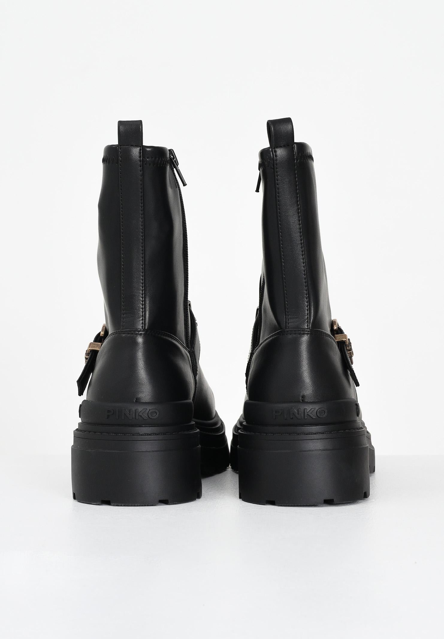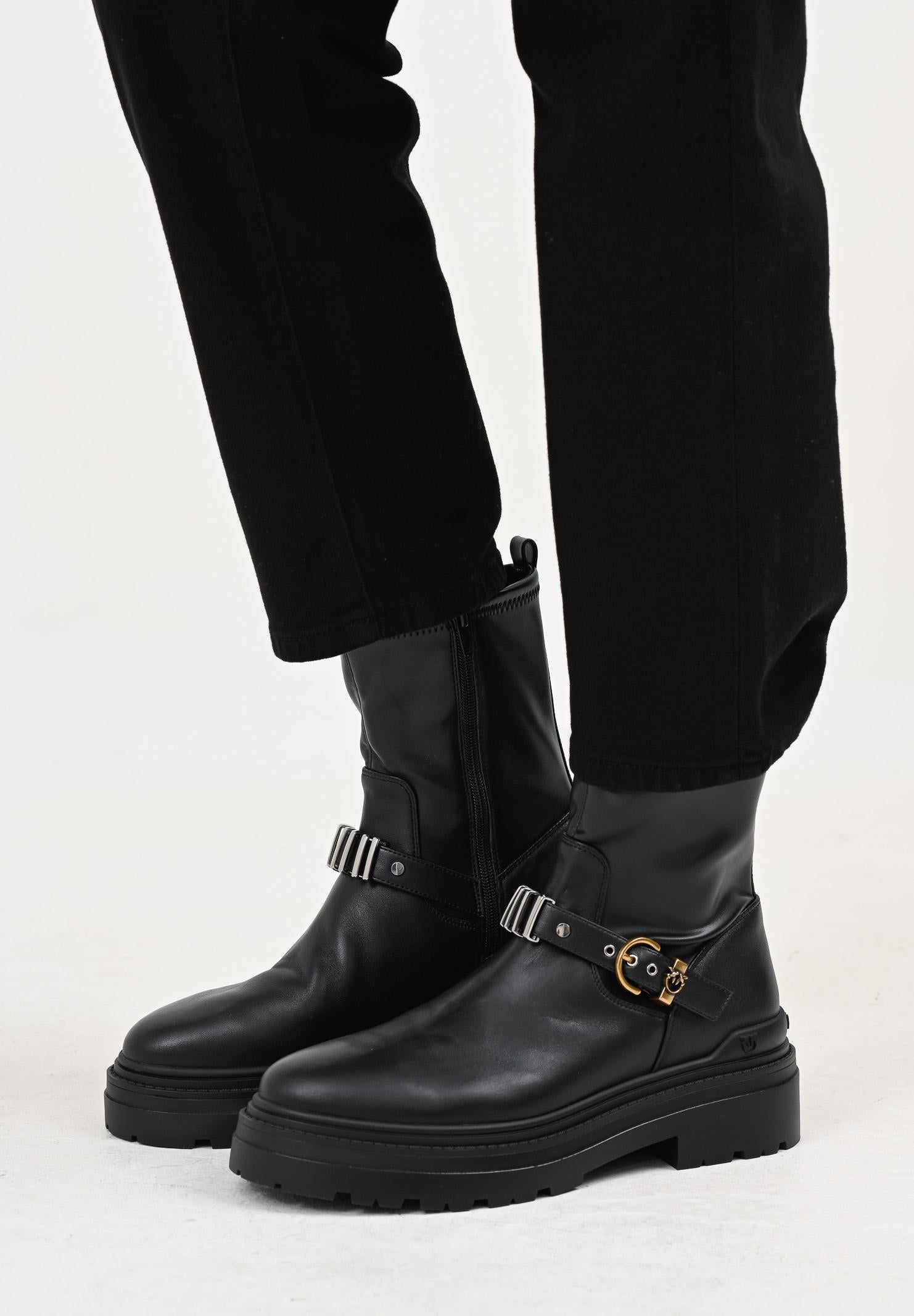 PINKO Damen niedrige schwarze Stiefel mit dekorativem Riemen
