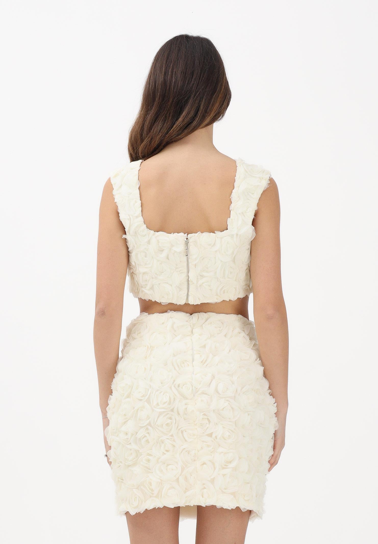 Elegantes, cremefarbenes Damenoberteil aus Stoff mit geprägten Blumenapplikationen