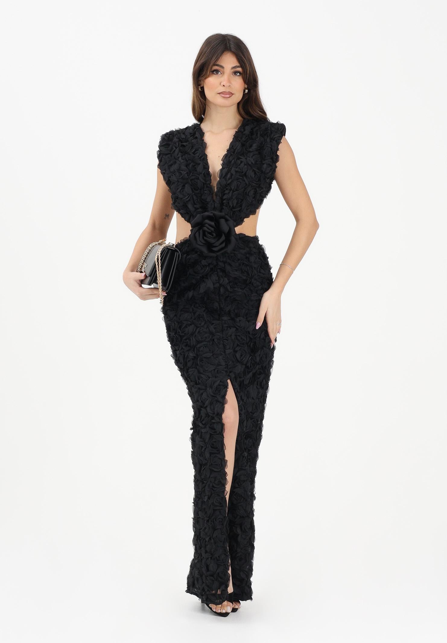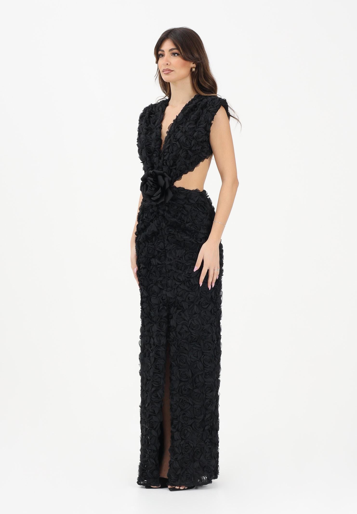 Schwarzes Damen-Maxikleid von SHIT mit 3D-Rosettenprägung