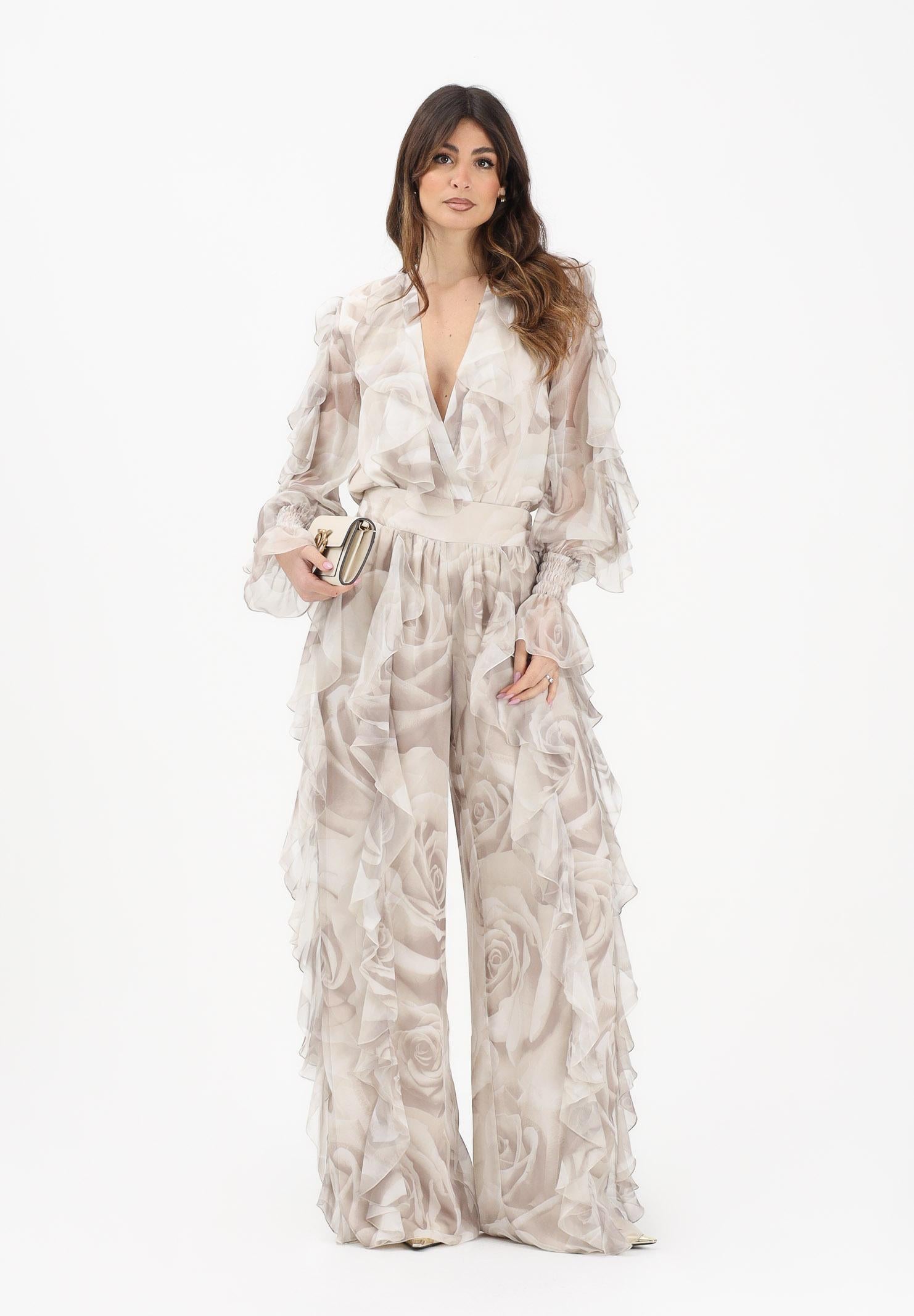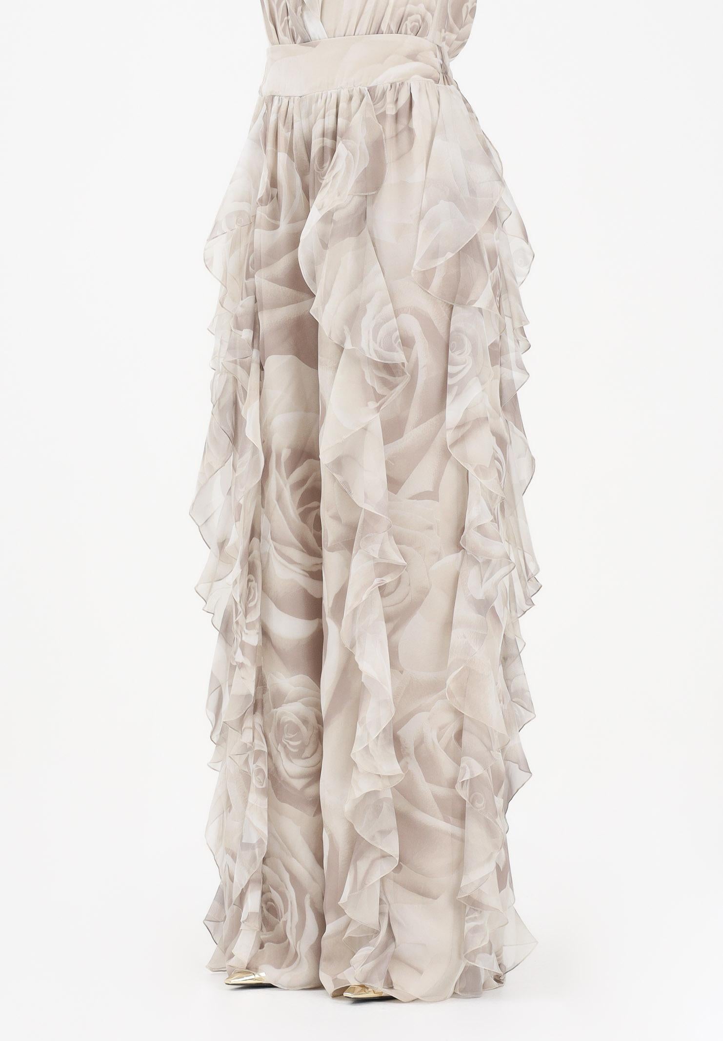 Elegante beige Damenhose von SHIT aus leichtem, federleichtem Stoff mit zartem Ton-in-Ton-Blumenmuster. Die lockere, fließende Silhouette macht jede Bewegung mit und wird durch weiche Chiffonrüschen an den Seiten betont, die Volumen und einen eleganten, flatternden Effekt verleihen. Der hohe, elastische Bund sorgt für optimalen Tragekomfort und eine harmonische Passform, die die Figur schmeichelhaft umspielt, ohne einzuengen. Die gekonnt abgestimmte Transparenz des Stoffes erzeugt einen raffinierten, transparenten Effekt und verleiht der Hose eine feminine und elegante Note – ideal für besondere Anlässe oder elegante Looks mit romantisch-modernem Flair. Das Model trägt Größe 40 und ist 175 cm groß. Schonwaschgang und Bügeln bei mittlerer Hitze werden empfohlen. Frühjahr/Sommer-Saison.