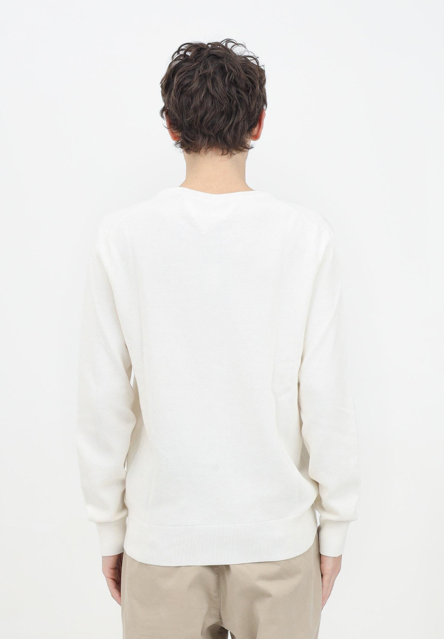 Weißer Herrenpullover mit Rundhalsausschnitt, normale Passform, Herbst/Winter, MW0MW36347Z00
