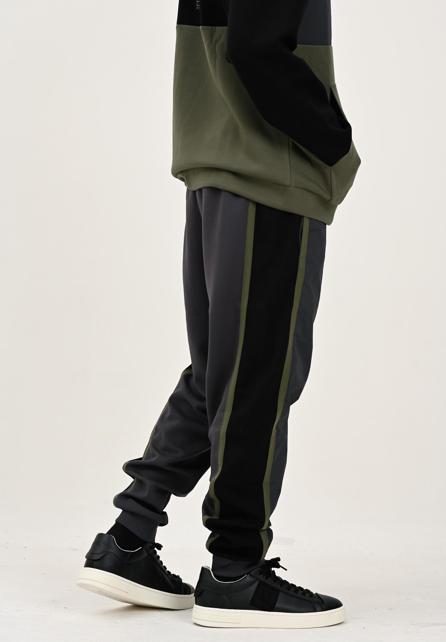 Graue EA7-Trainingshose für Herren. Sie verfügt über einen verstellbaren, elastischen Bund mit innenliegendem Kordelzug, zwei praktische offene Seitentaschen und elastische Beinabschlüsse für eine bequeme, sportliche Passform. Ein markantes Detail ist das seitliche Band mit kontrastierendem Logo, das dem Design eine dynamische und moderne Note verleiht. Das Model trägt Größe L und ist 187 cm groß. Wir empfehlen, bei mittlerer Temperatur zu waschen und zu bügeln. Herbst/Winter.