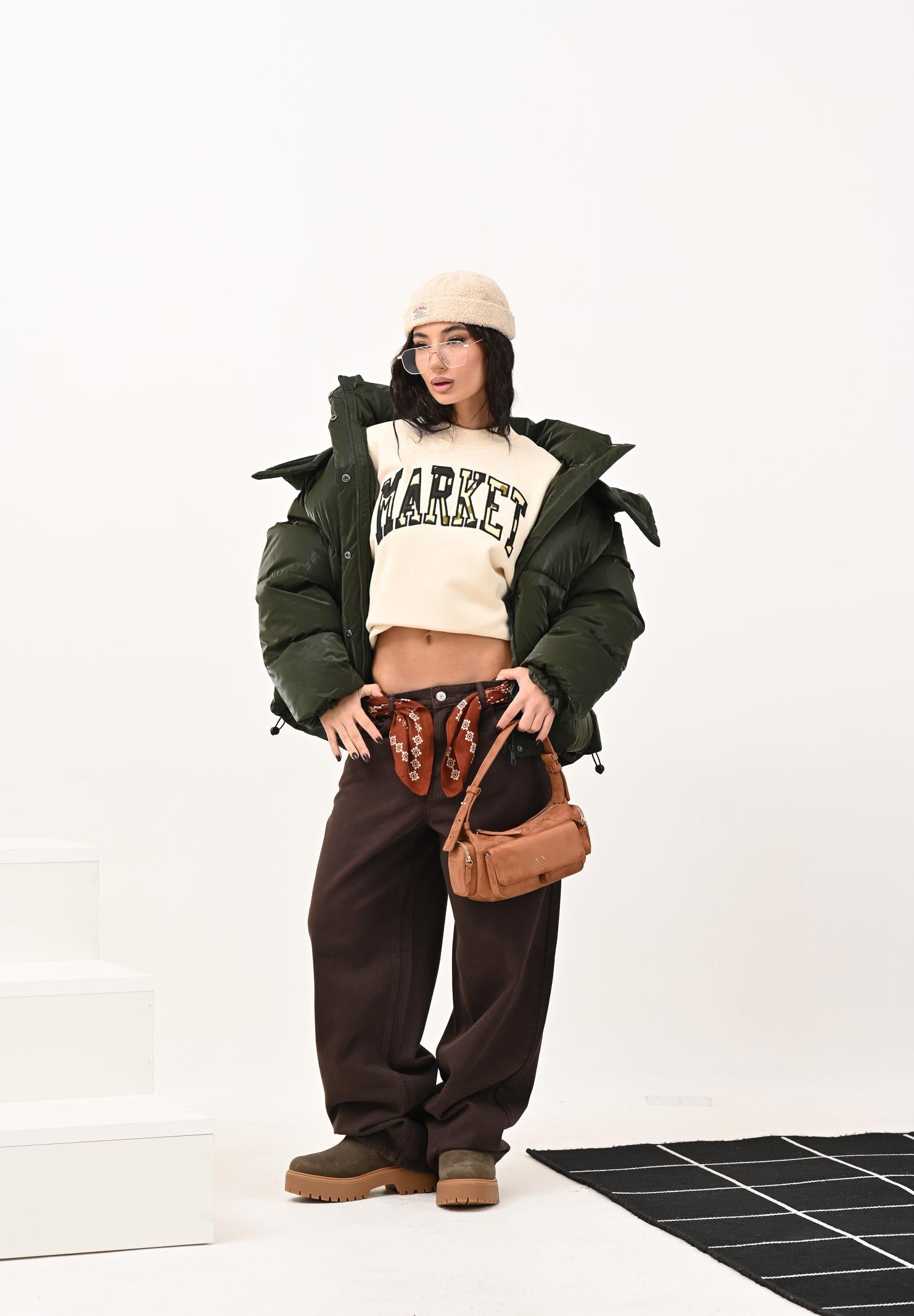 MARKET Beiges Herren-Sweatshirt mit Rundhalsausschnitt und Camouflage-Logo