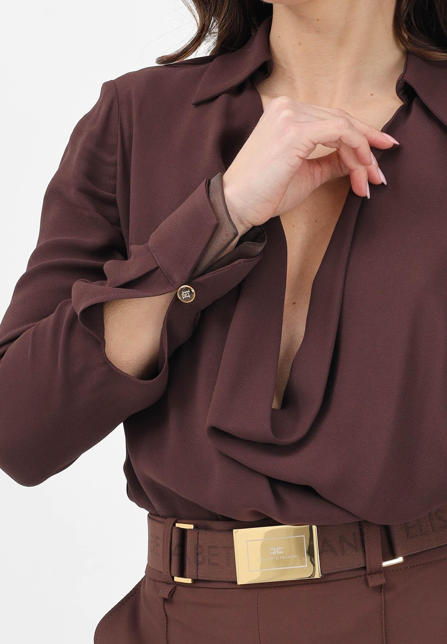 ELISABETTA FRANCHI Damen-Langarmbody in Kakaobraun