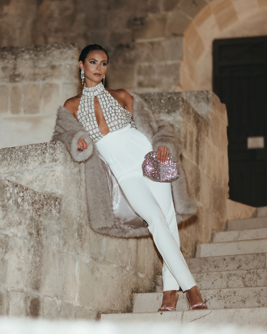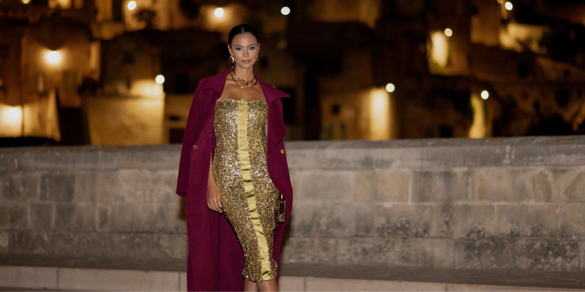 Der Kontrast zwischen der Modernität der Kollektion und der antiken Seele von Matera erweckte ein einzigartiges Fotoset zum Leben: ein Dialog zwischen Mode und Architektur, zwischen Weiblichkeit und Landschaft, zwischen Gegenwart und Vergangenheit.