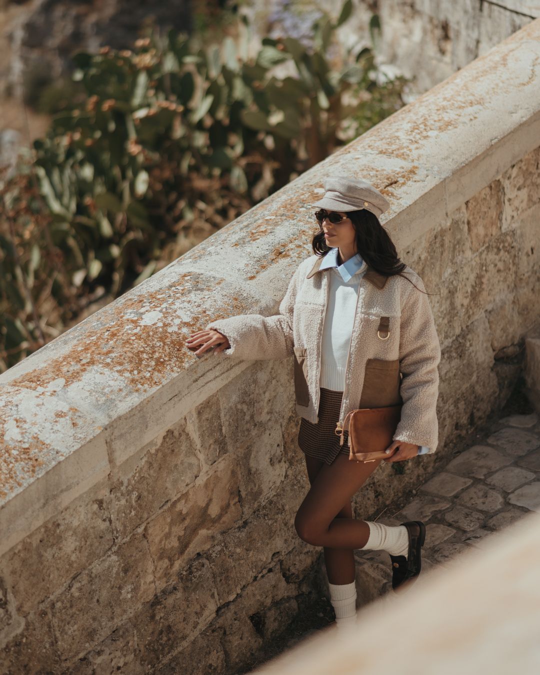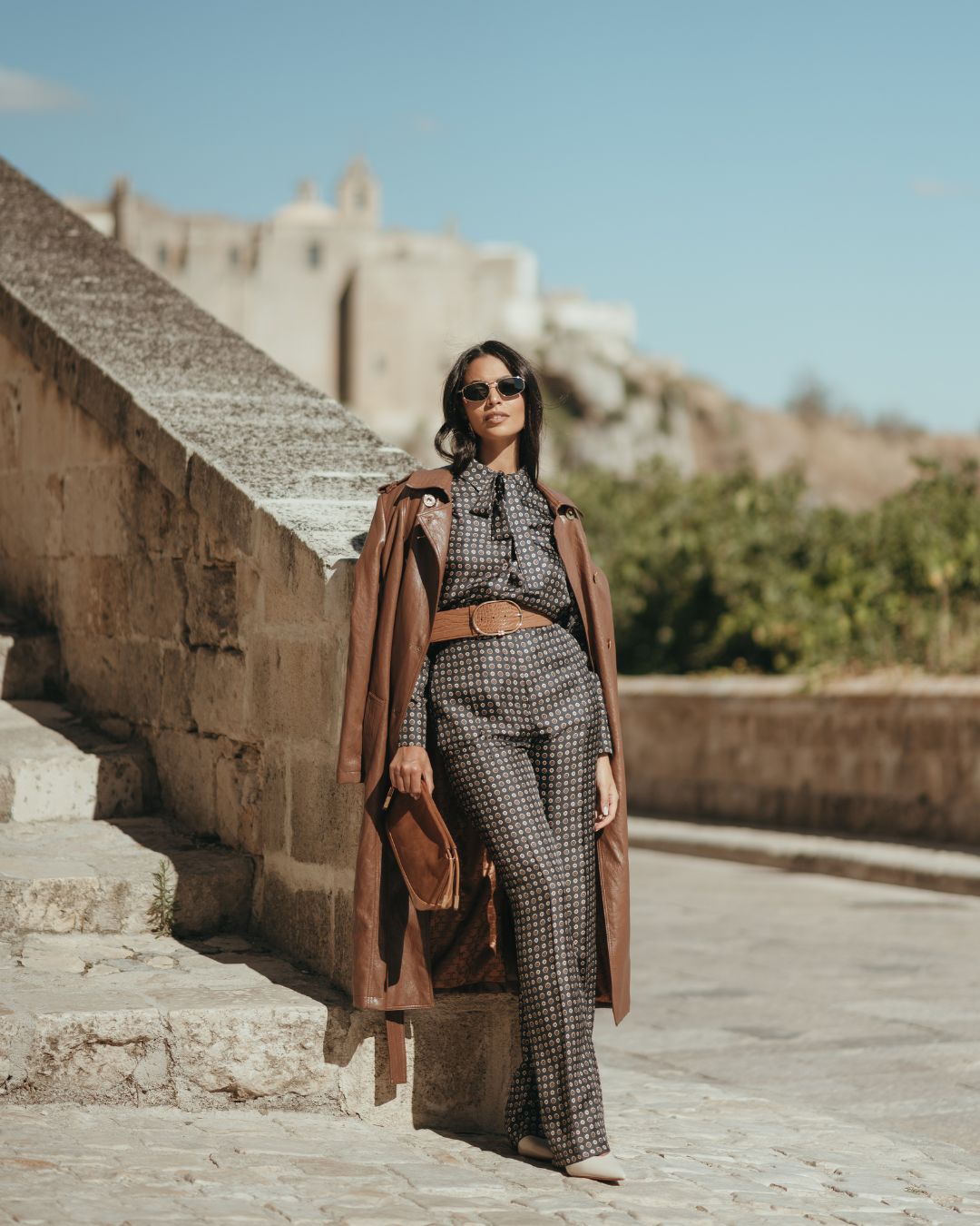 Zwischen den gepflasterten Straßen und Blicken, die in der Zeit stehen geblieben zu sein scheinen, haben unsere Kleidungsstücke den idealen Rahmen gefunden: einen Ort, der jedes Detail hervorhebt und jeden Look in eine Geschichte der Eleganz verwandelt.