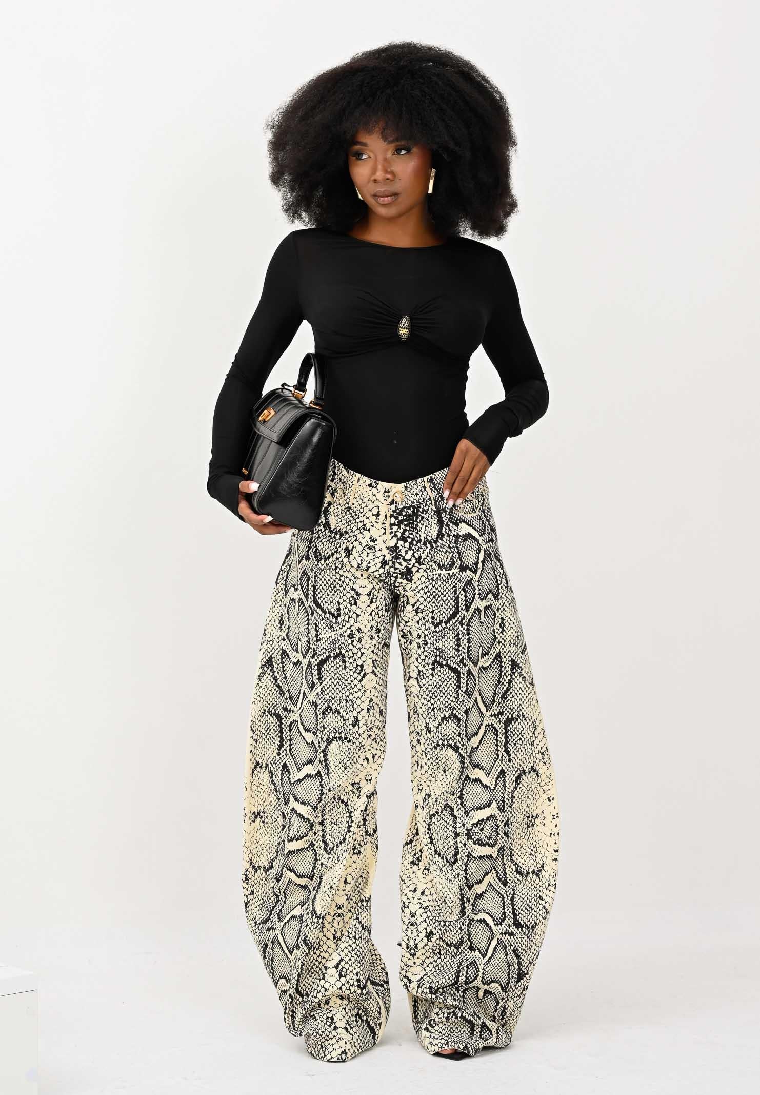 ELISABETTA FRANCHI Schwarzer Damen-Bodysuit mit Schmuckdetail