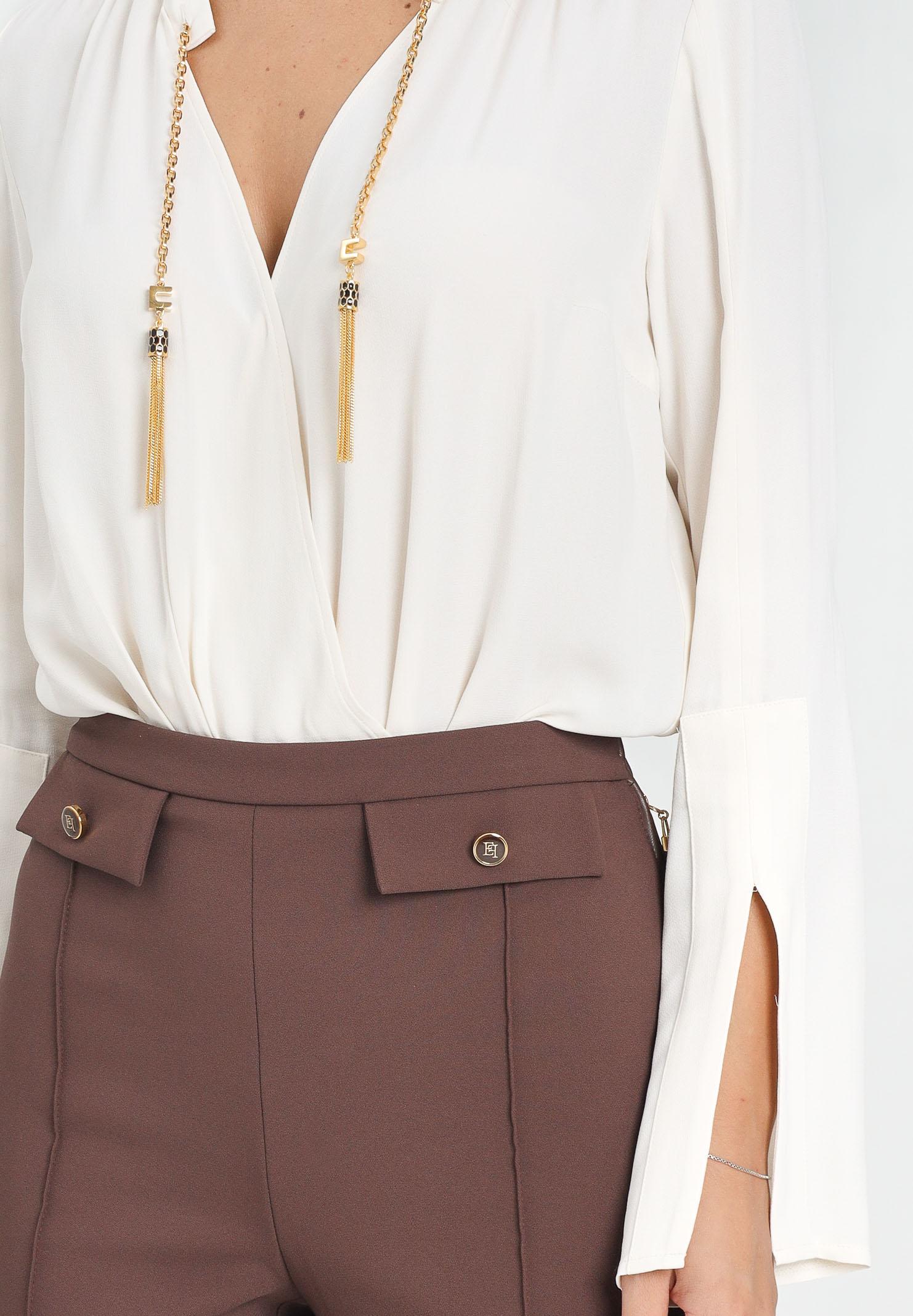 ELISABETTA FRANCHI Cremefarbener Damen-Bodysuit mit Schmuckdetails