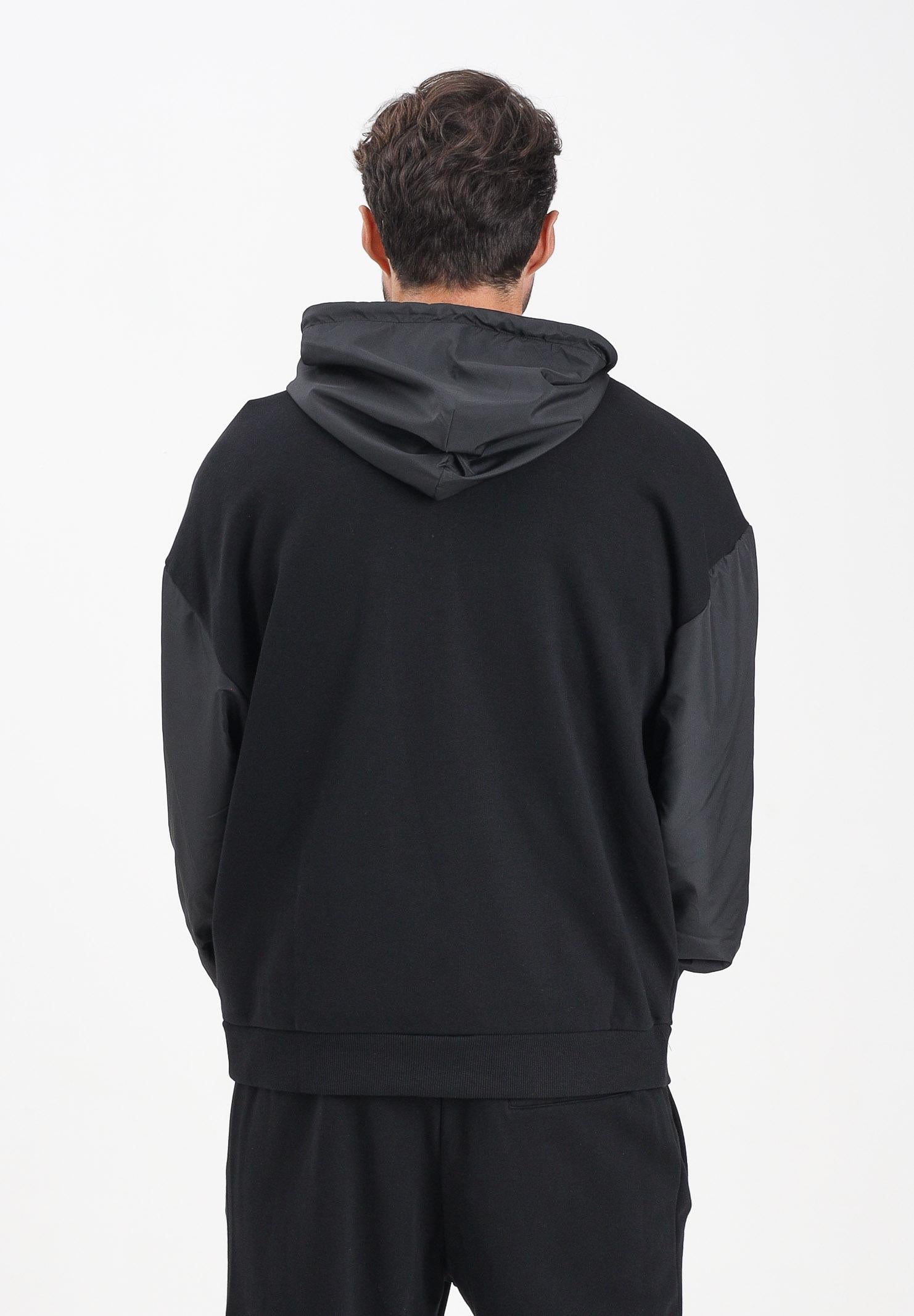 GCDS Schwarzes Sweatshirt mit Reißverschluss für Männer und Frauen mit Einsätzen aus technischem Gewebe und Logo