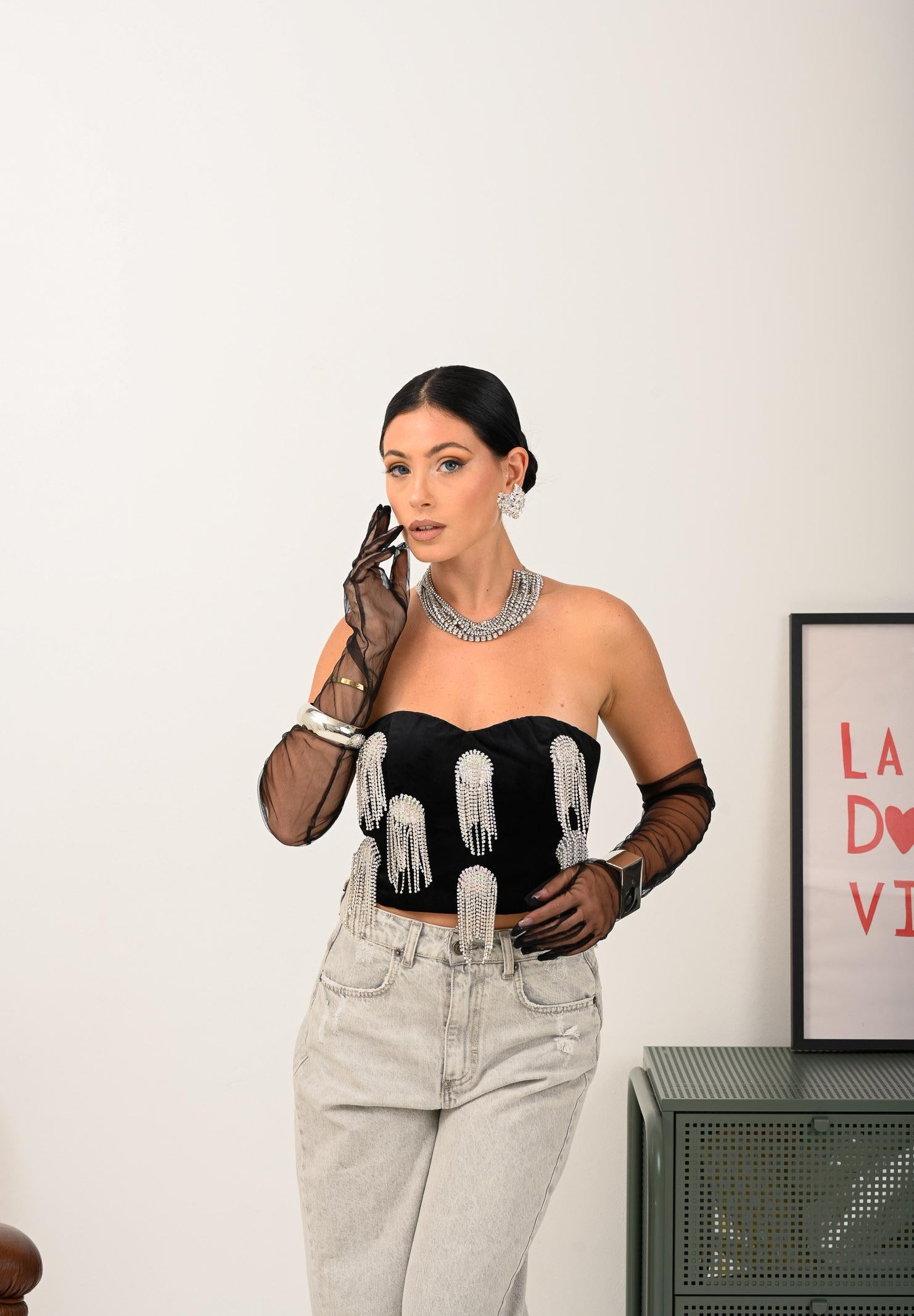 ODI ODI Schwarzes Asciano-Mieder mit Applikationen für Damen