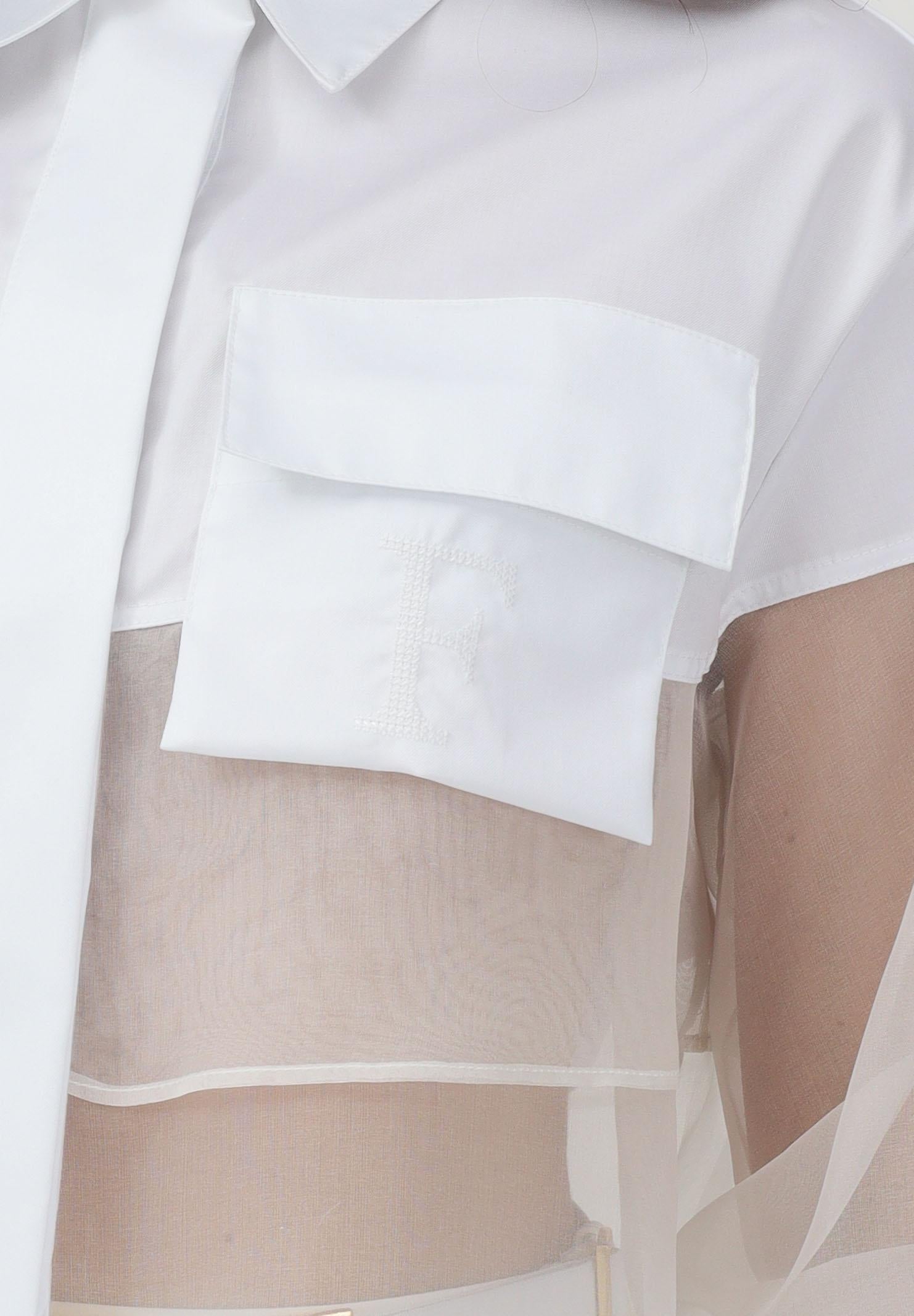 ELISABETTA FRANCHI Weißes Damen-Langarmhemd mit Tülleinsatz